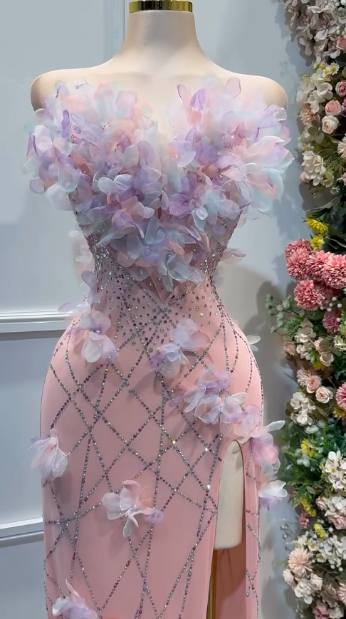 Stunning Pink Strapless Bodycon Chiffon Sequin Long Prom Dresses Formal Evening Gowns with Appliques ED02698