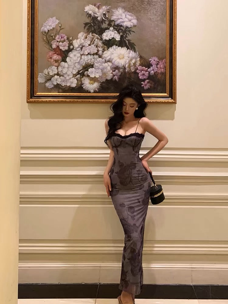 Stunning Sheath Spaghetti Straps Long Date Night Dress Prom Dresses Birthday Outfit SD824