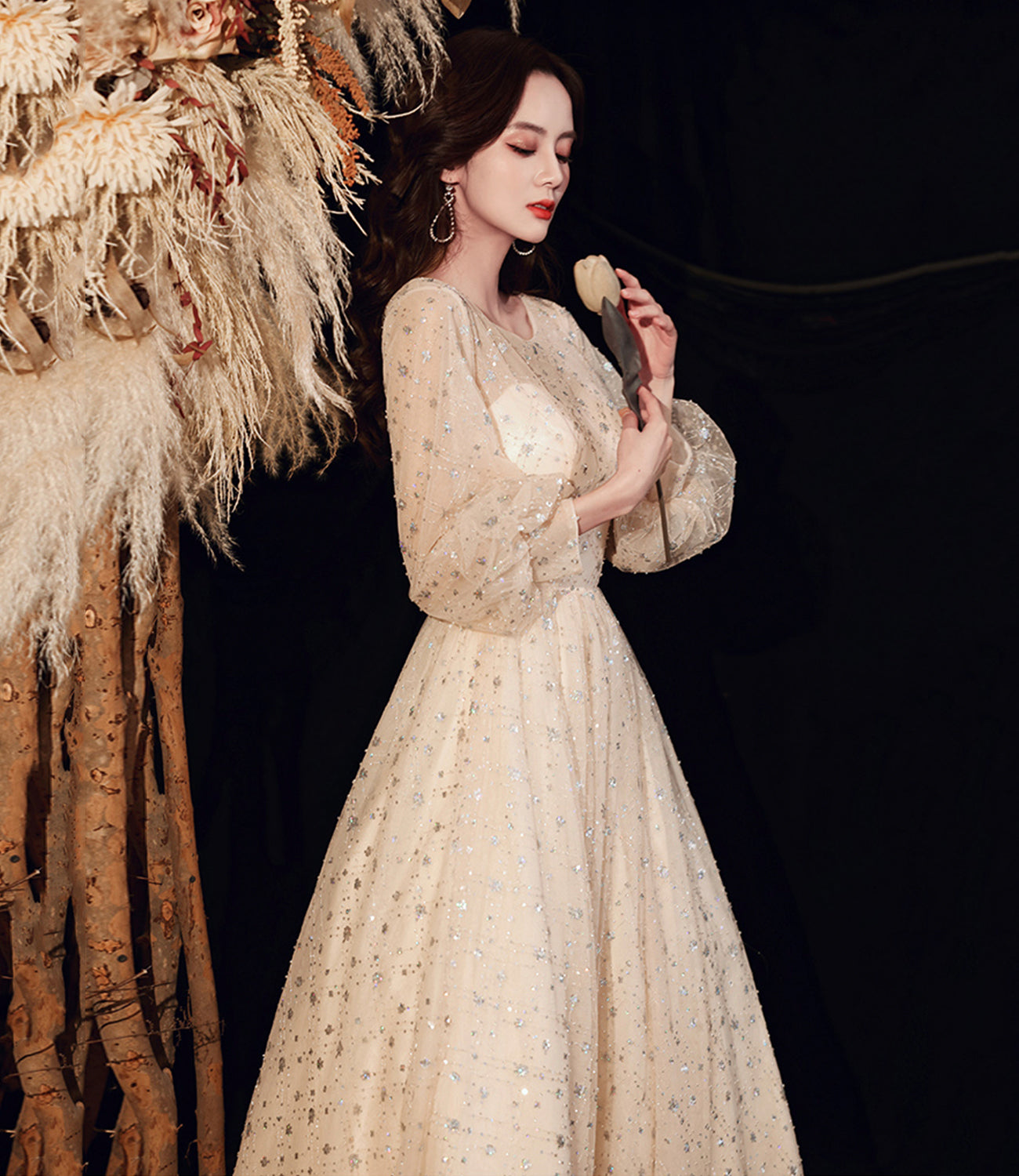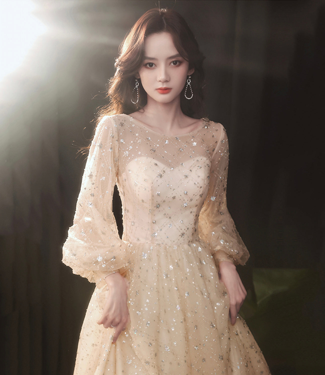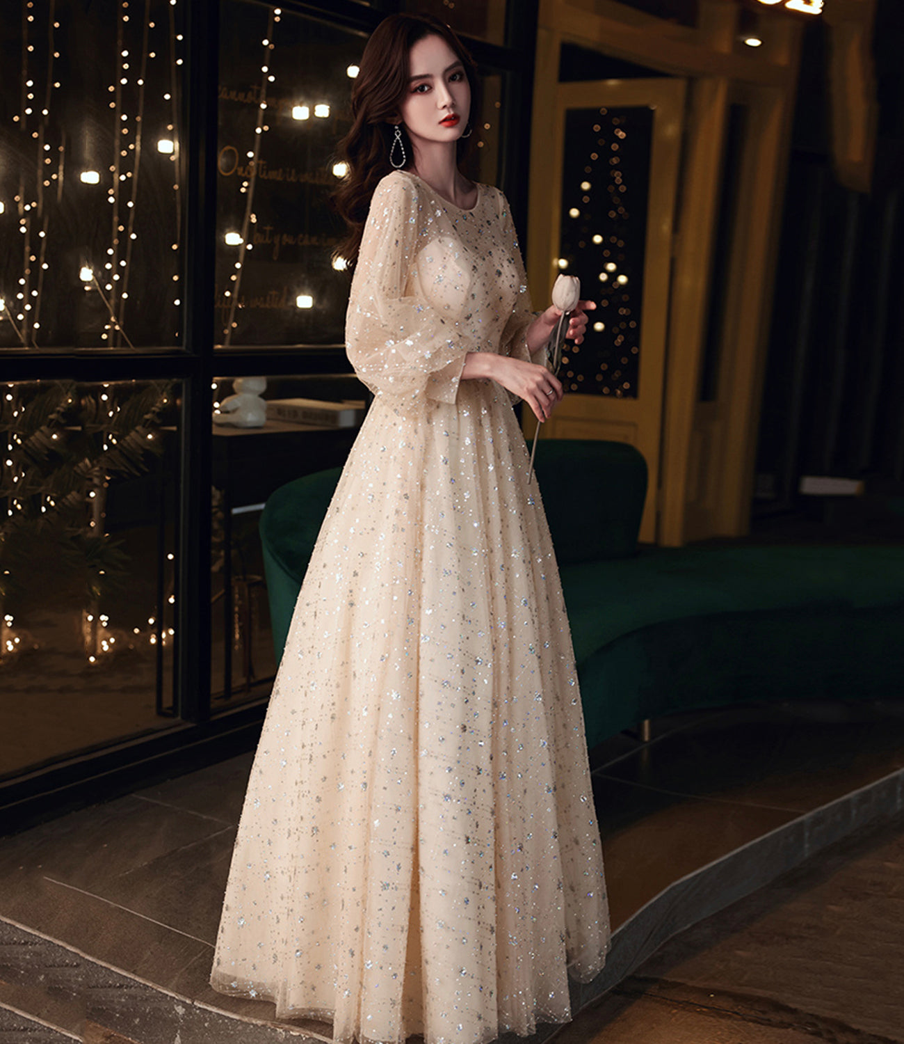 Stylish tulle sequins prom dress long sleeve evening dress 10028