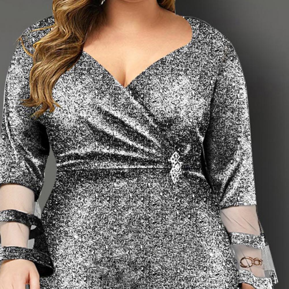 loveedsTM-Summer Dress Women Elegant Sexy V Neck Bright Silk Mesh Evening Wedding Party Dress Oversized Slim Bodycon Dresses 5XL