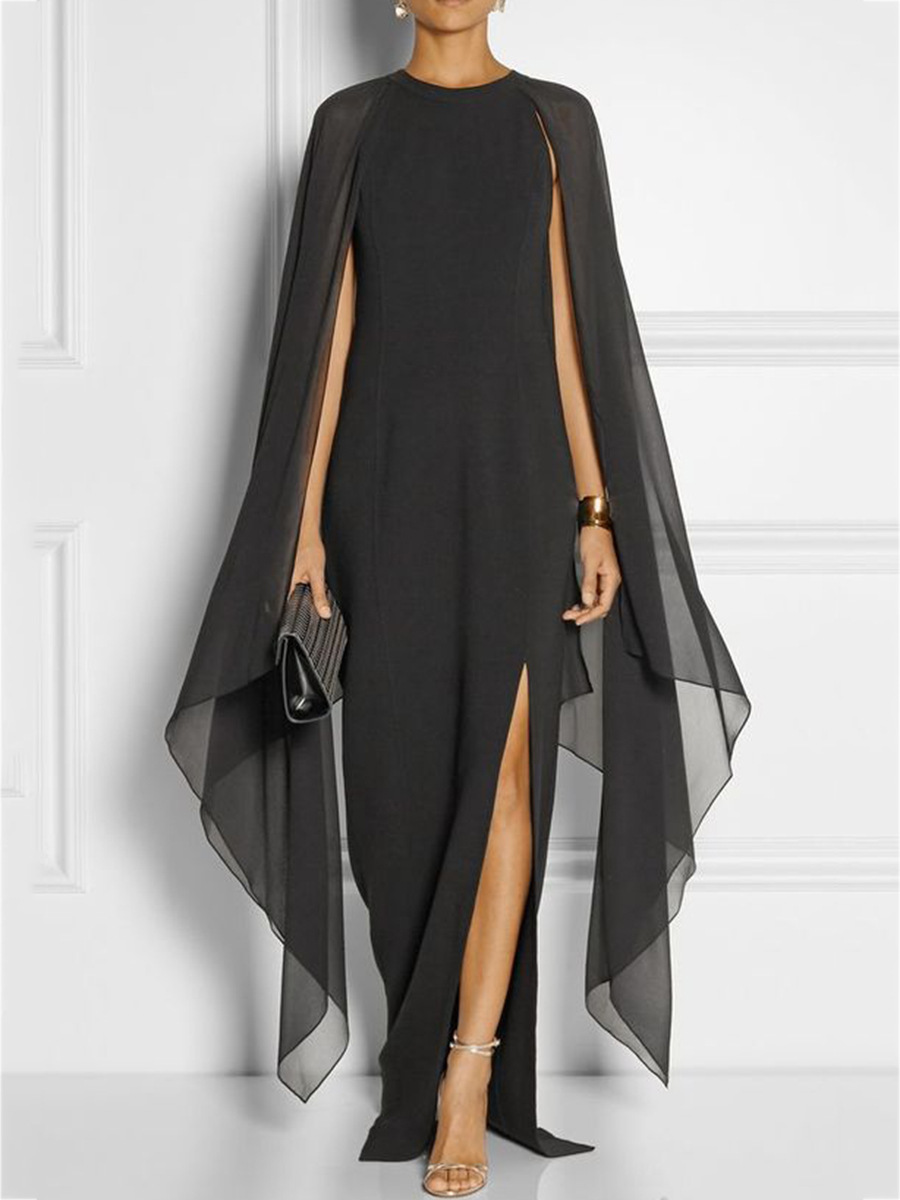 loveedsTM-Summer Maxi Dresses for Women Evening Party Chiffon Cape Sexy Long Dress Female High Slit Vestidos De Mujer Feminino Robe Femme