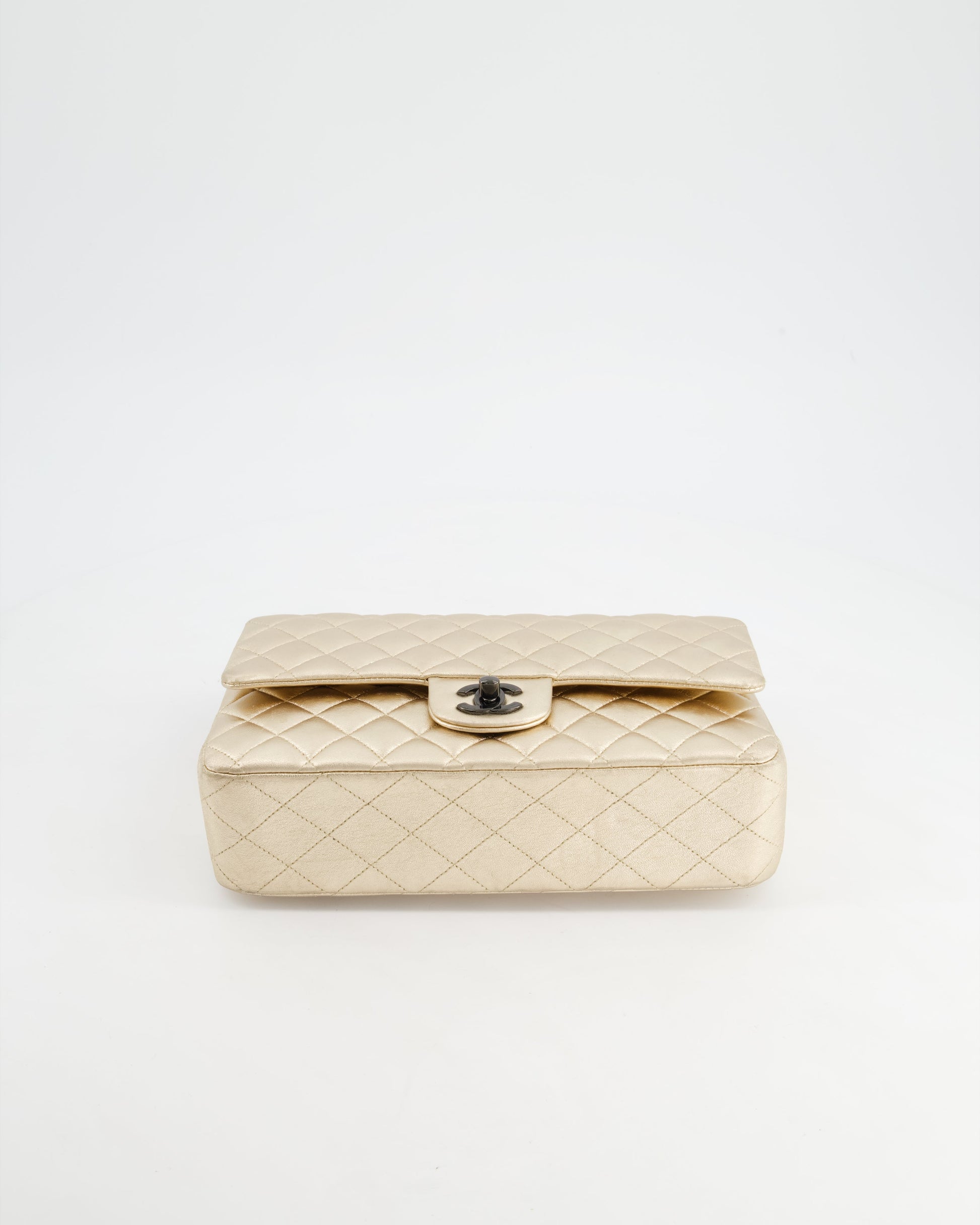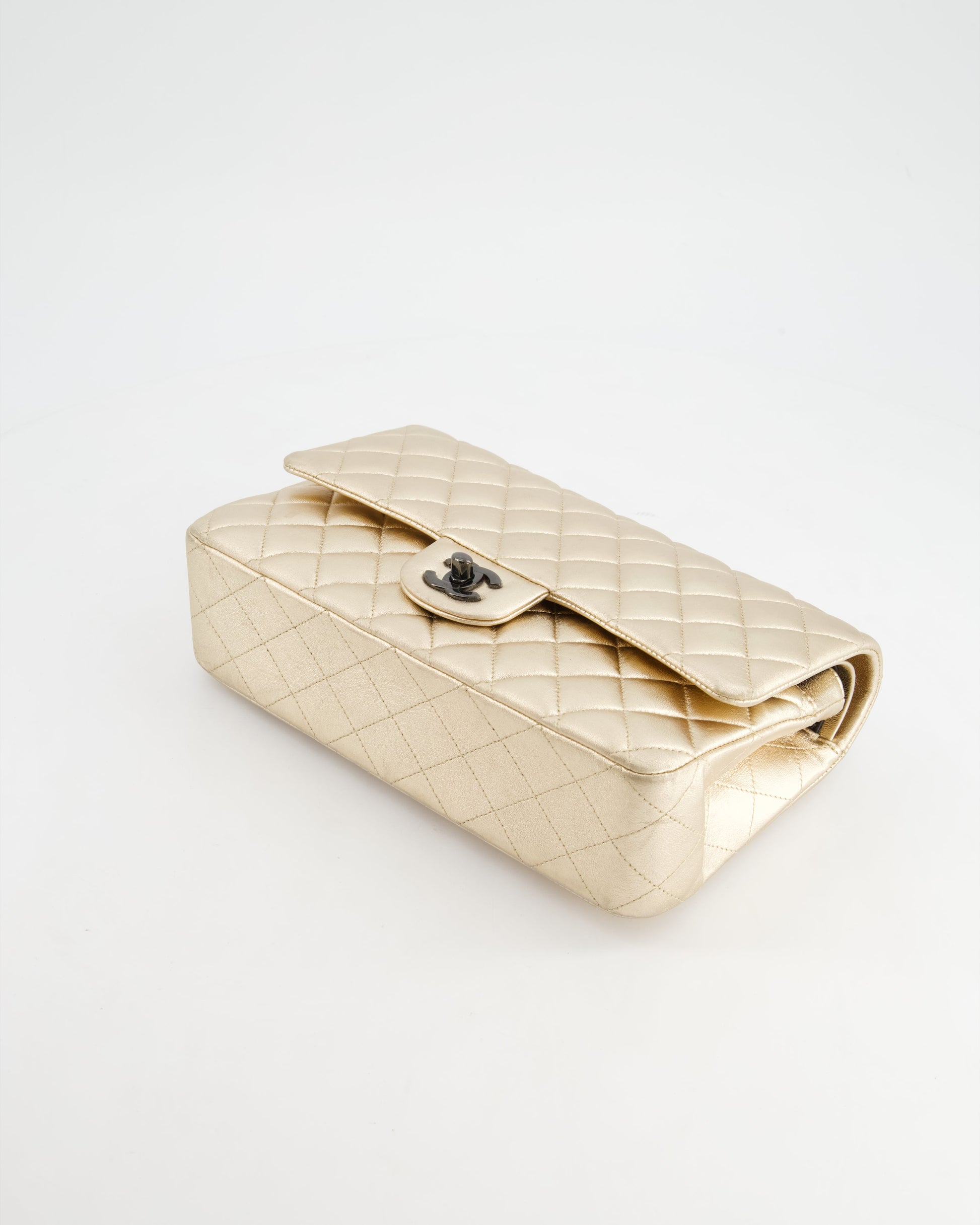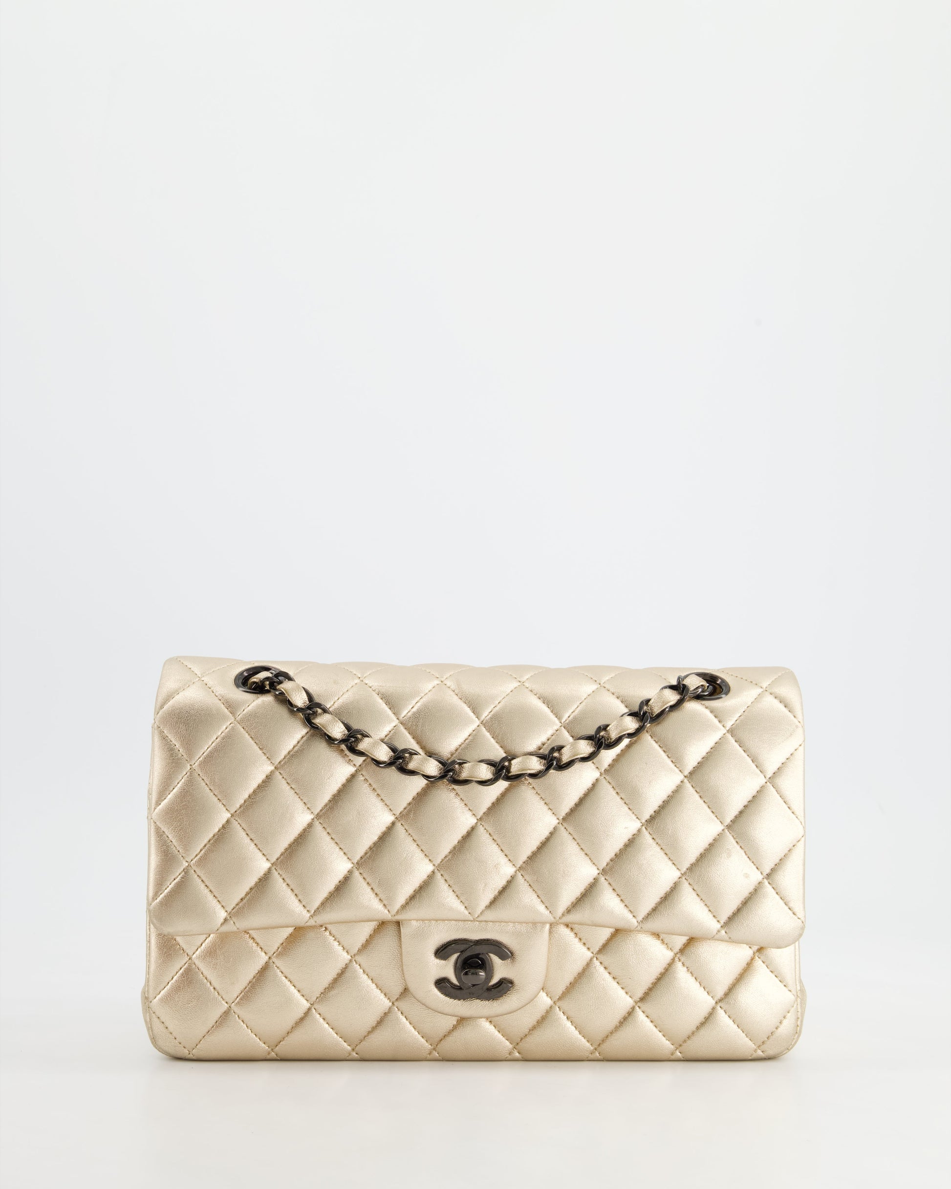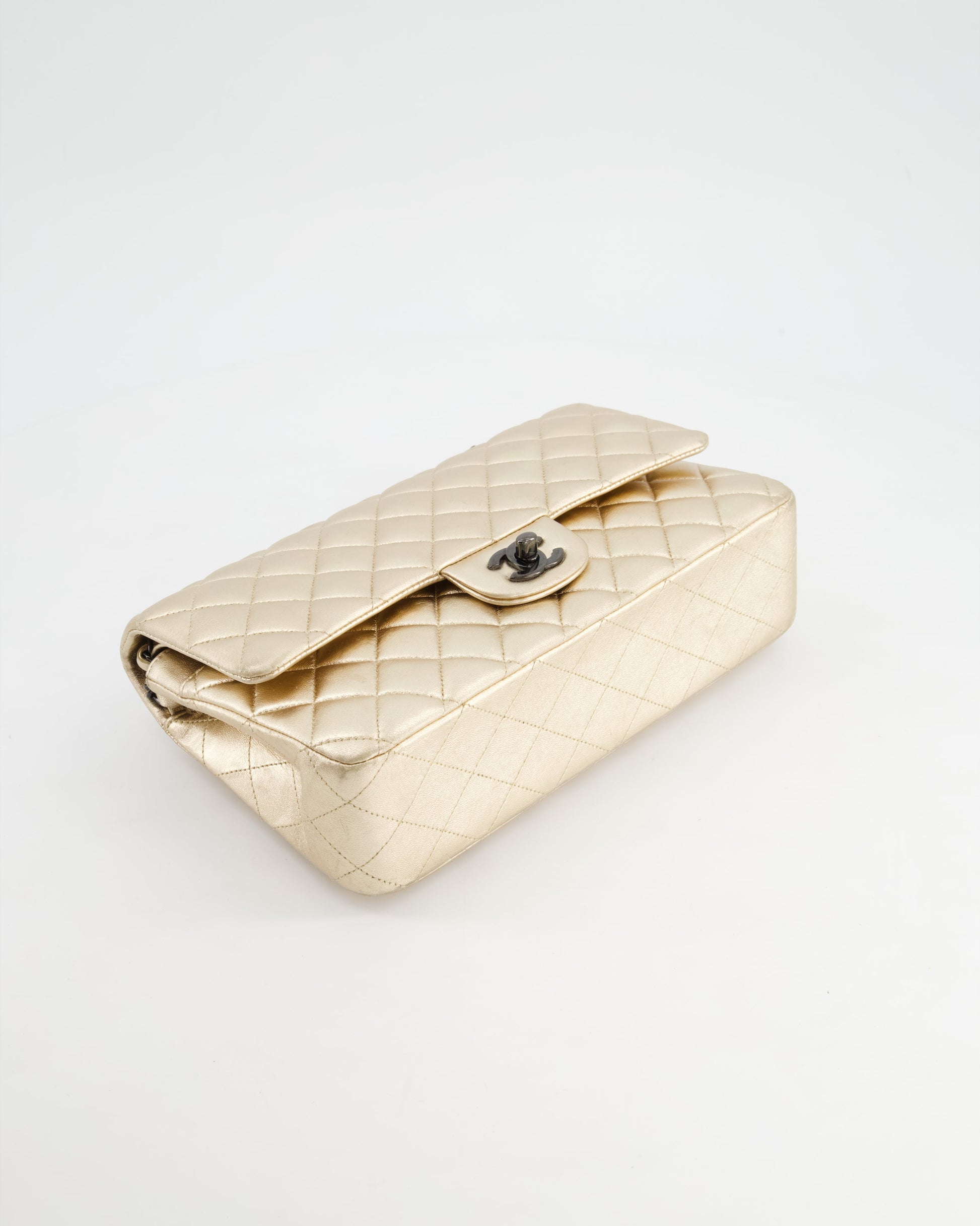 *SUPER RARE* Chanel Metallic Gold Medium Classic Double Flap Bag in Lambskin Leather with Black Hardware