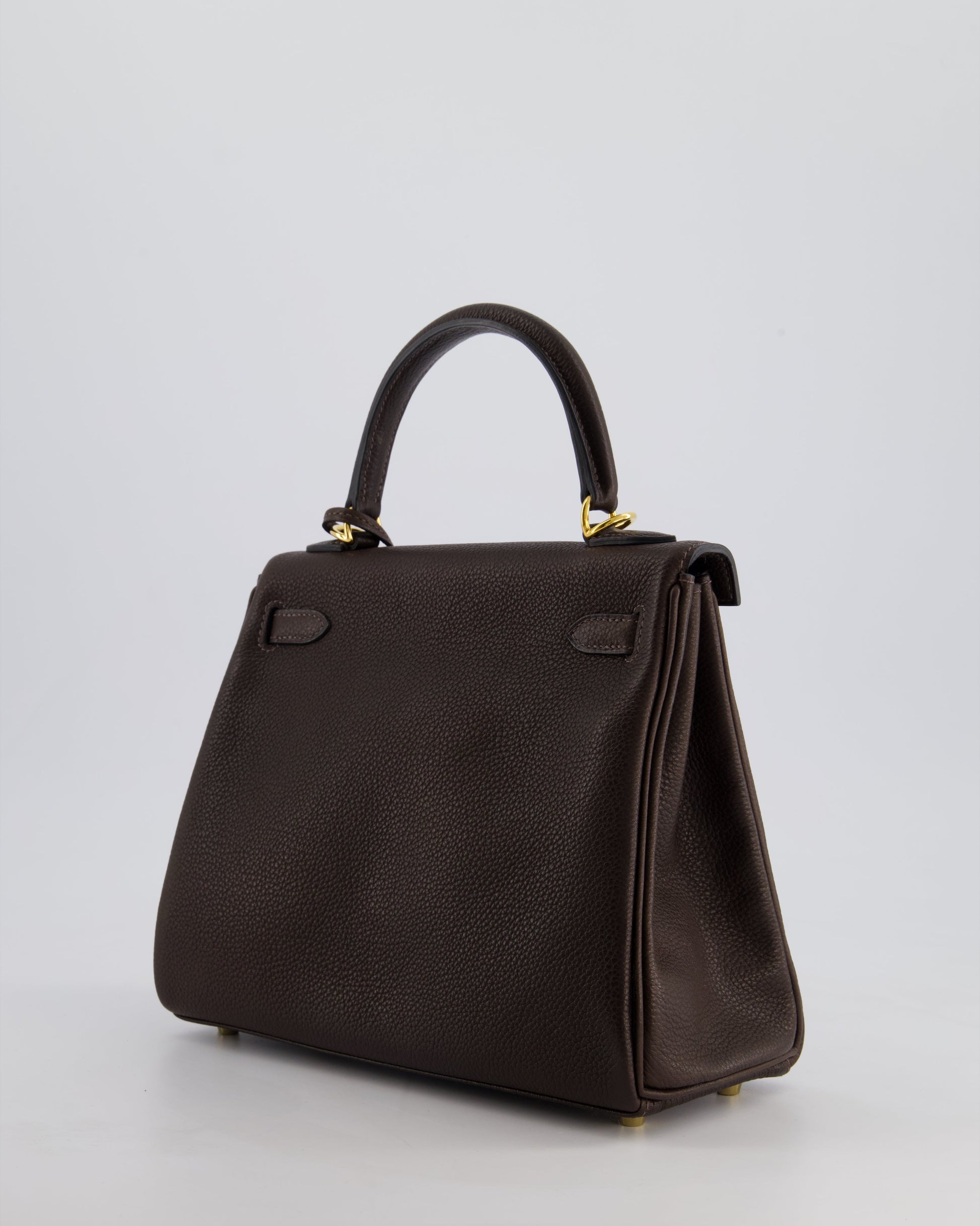 *SUPER RARE* Hermès Kelly Bag 25cm Retourne in Ebene Barenia Faubourg Leather with Gold Hardware
