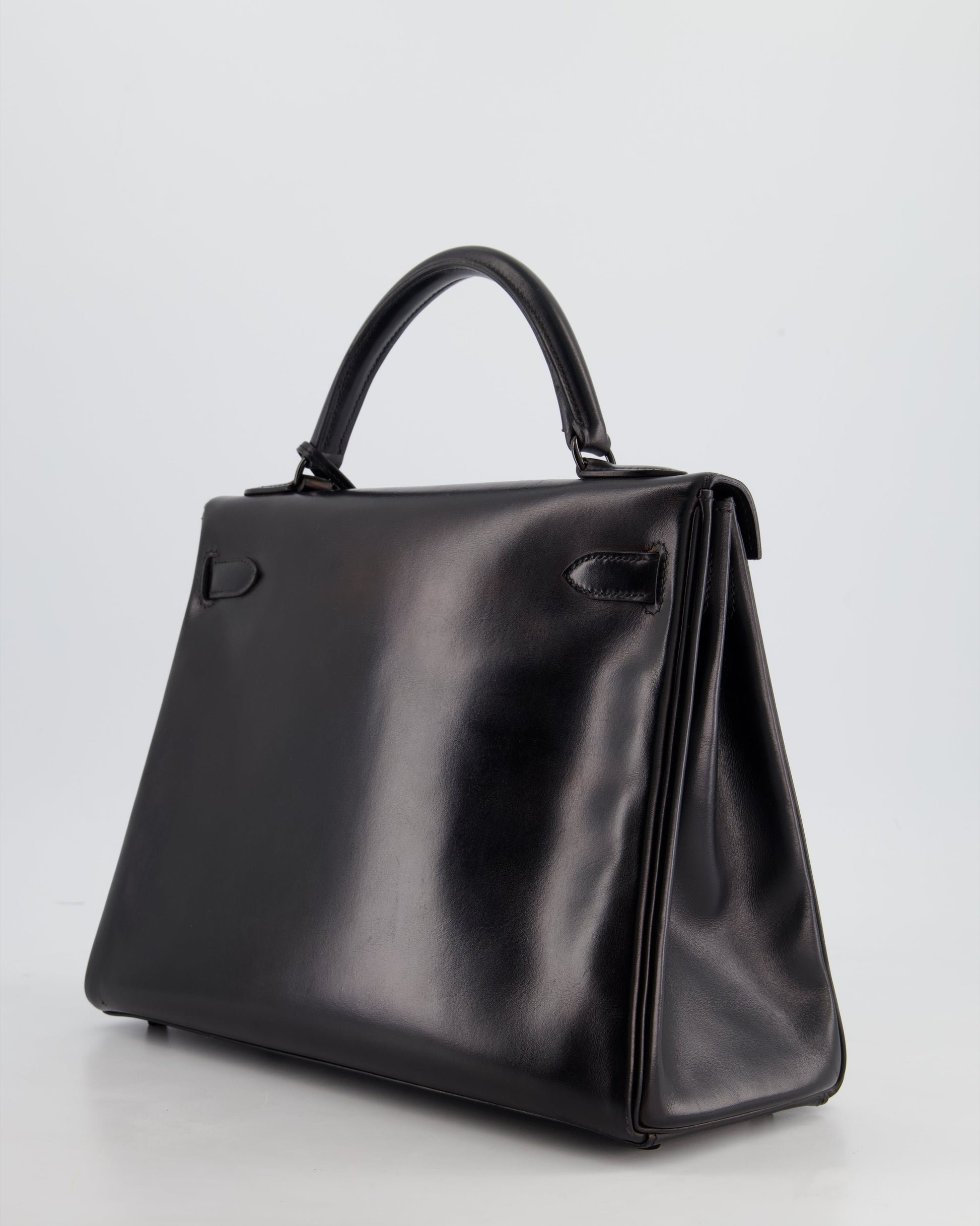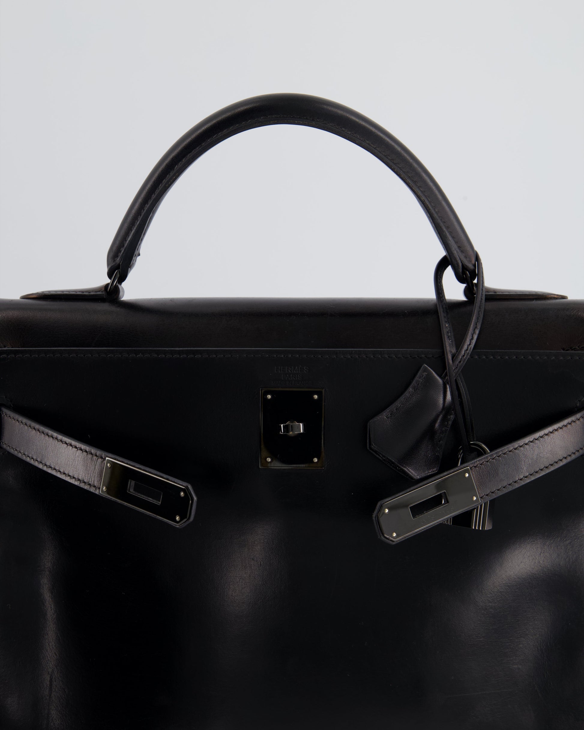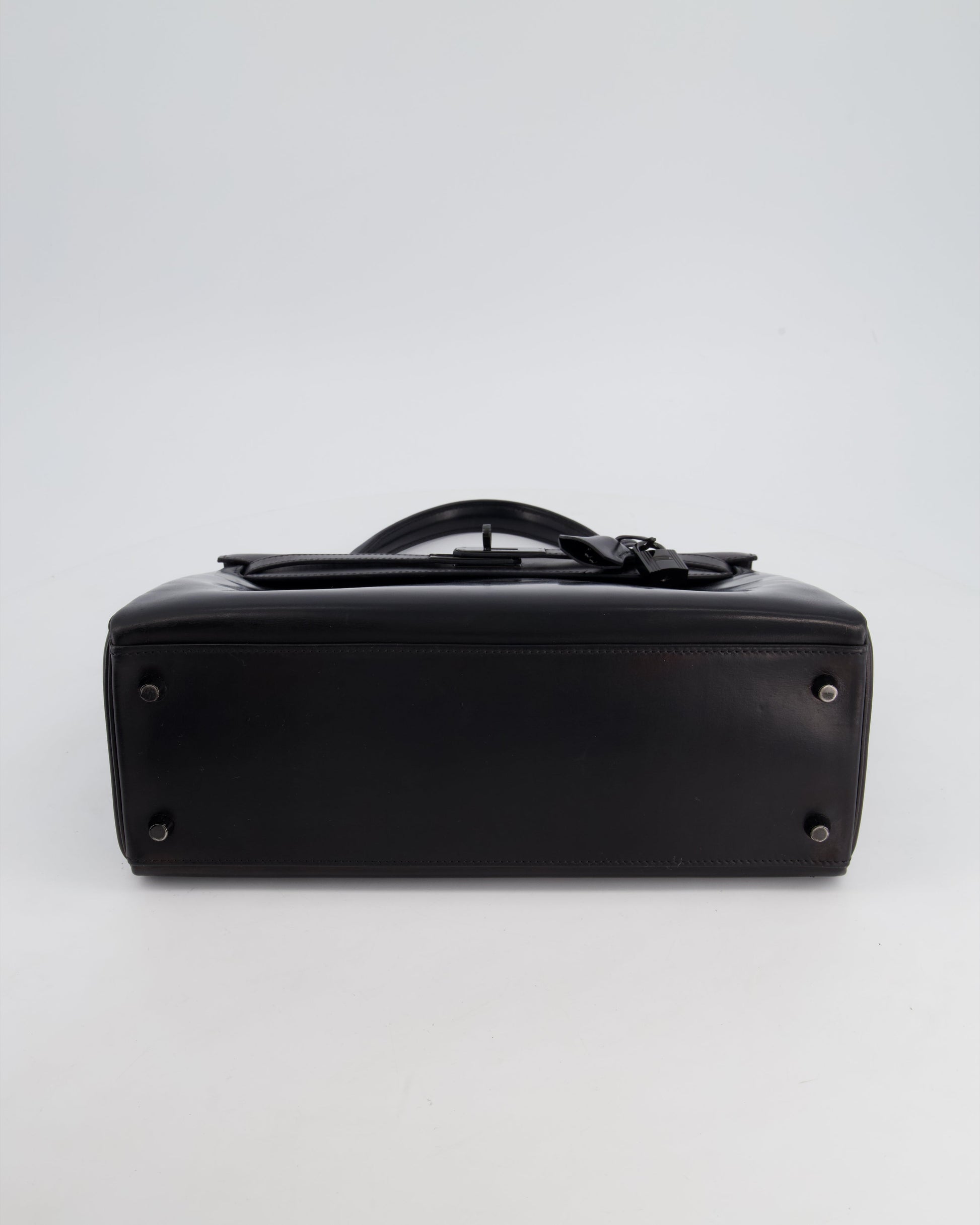 *SUPER RARE* Hermès So Black Kelly Retourne 32cm in Box Calfskin Leather and Black Hardware