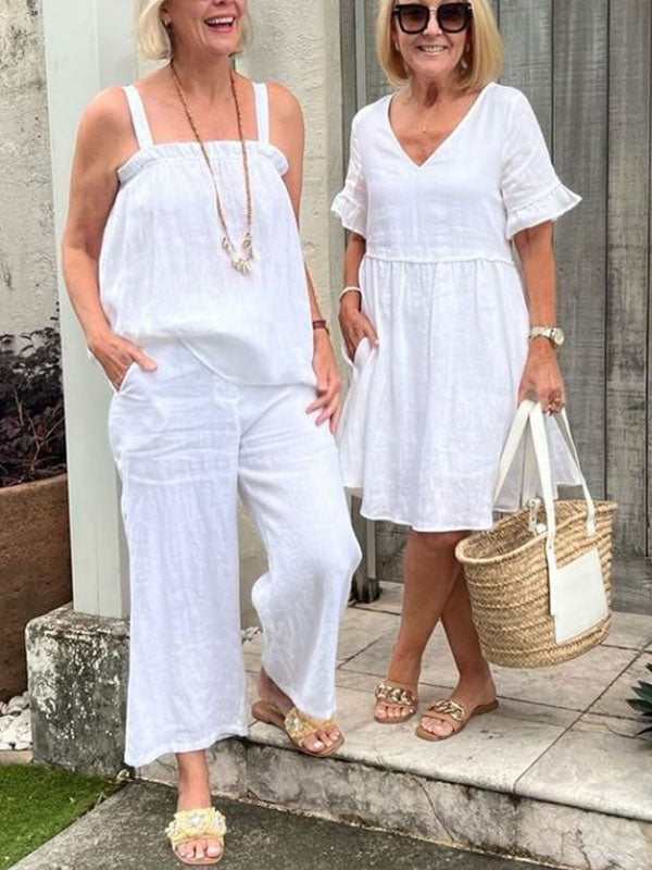Suspender Cotton Linen Women's Suits