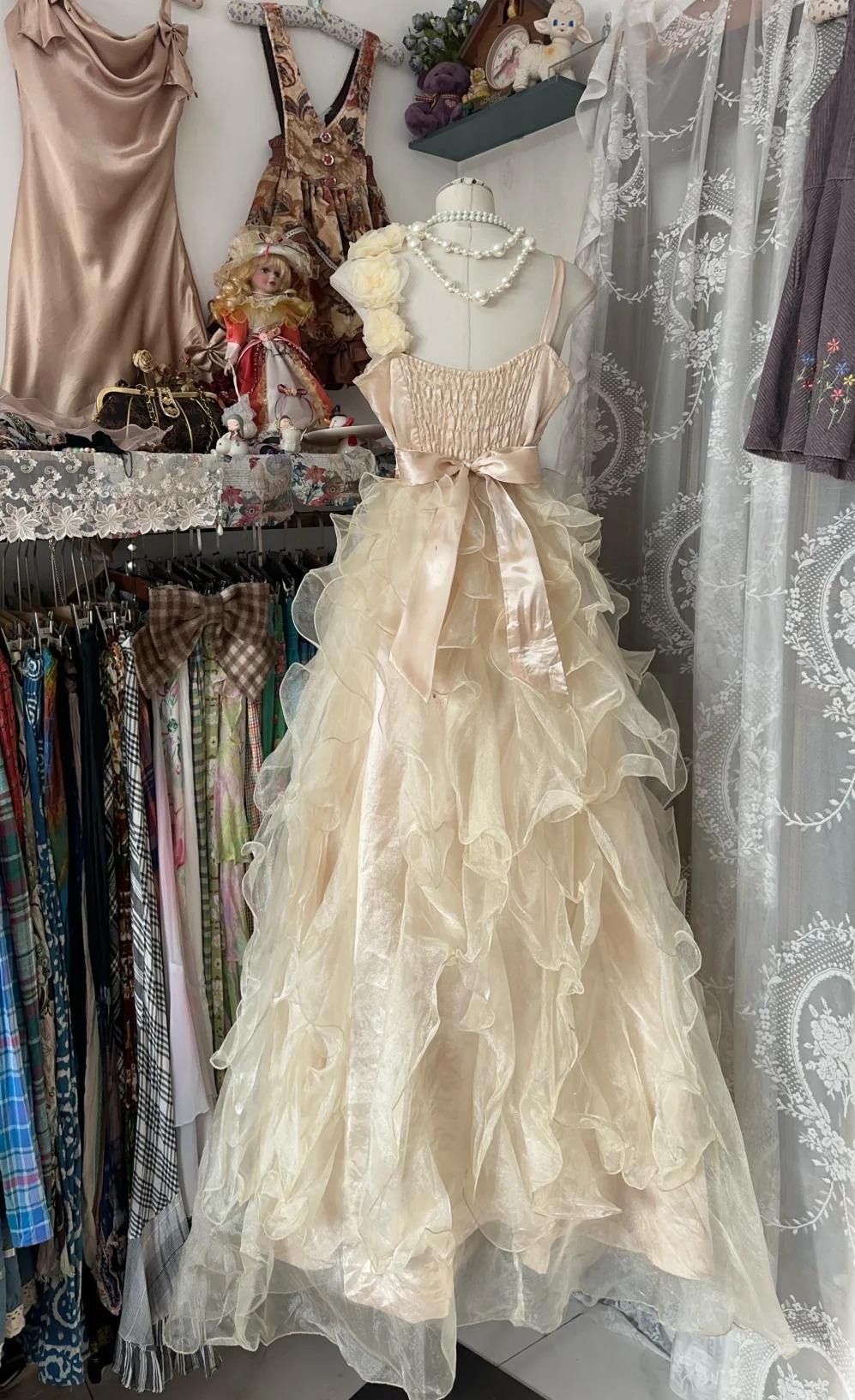 Sweet Light Yellow A-Line Spaghetti Straps Tulle Layered Prom Dress Beaded Sequin Birthday Dress ED01869