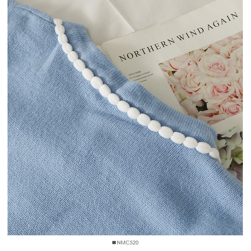 Sweet little fresh stripe single breasted crew neck thin sweater 1810