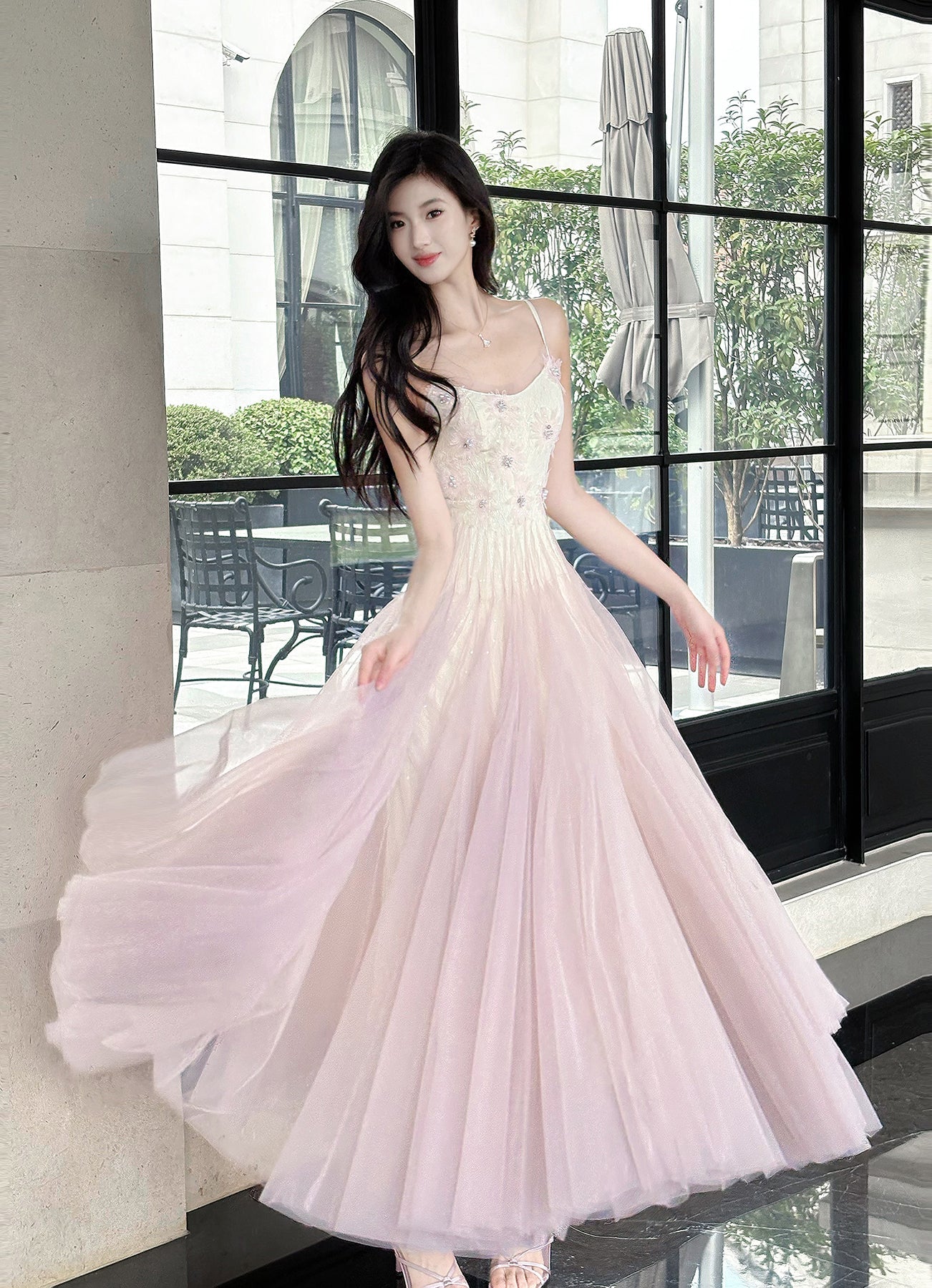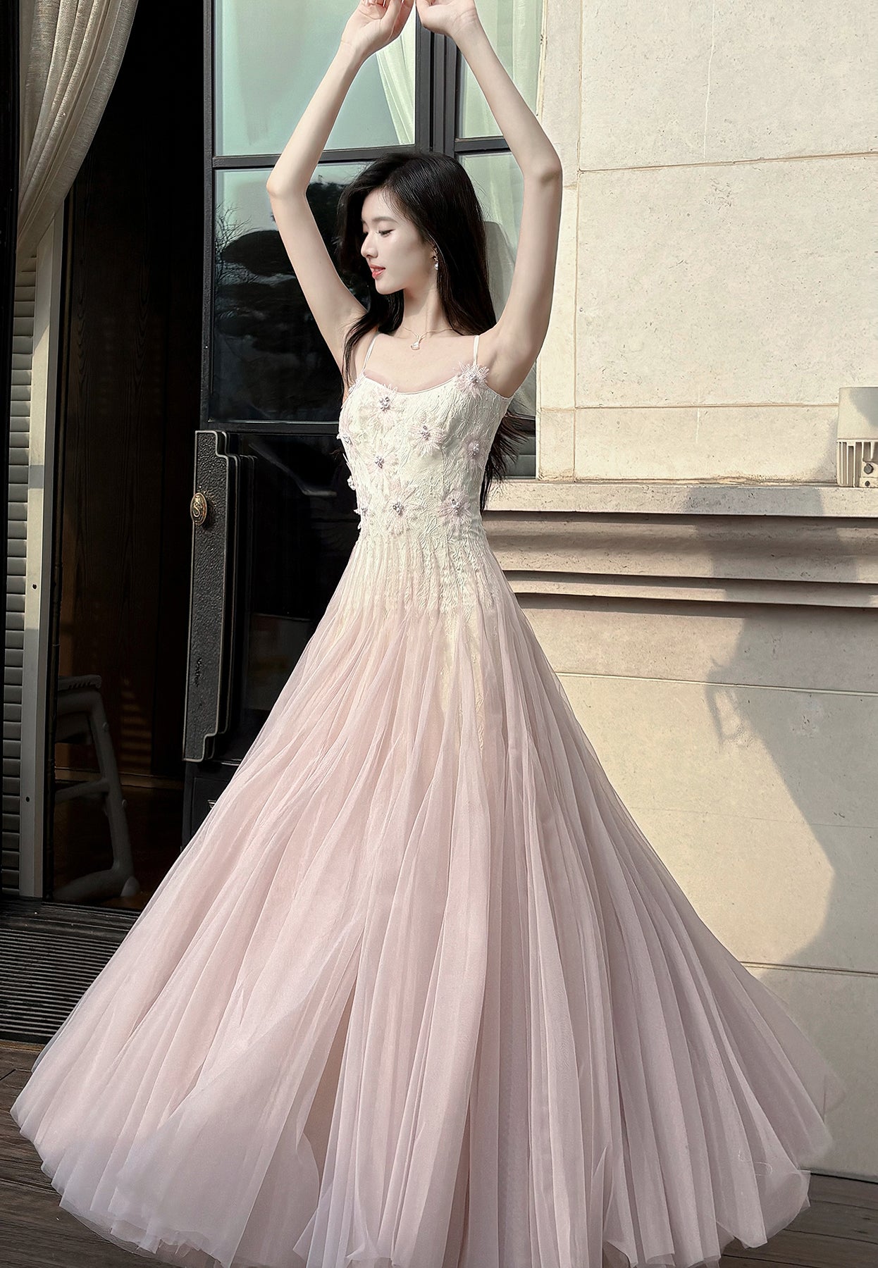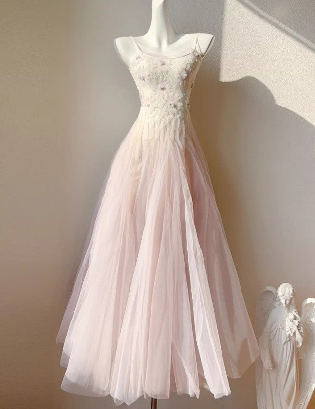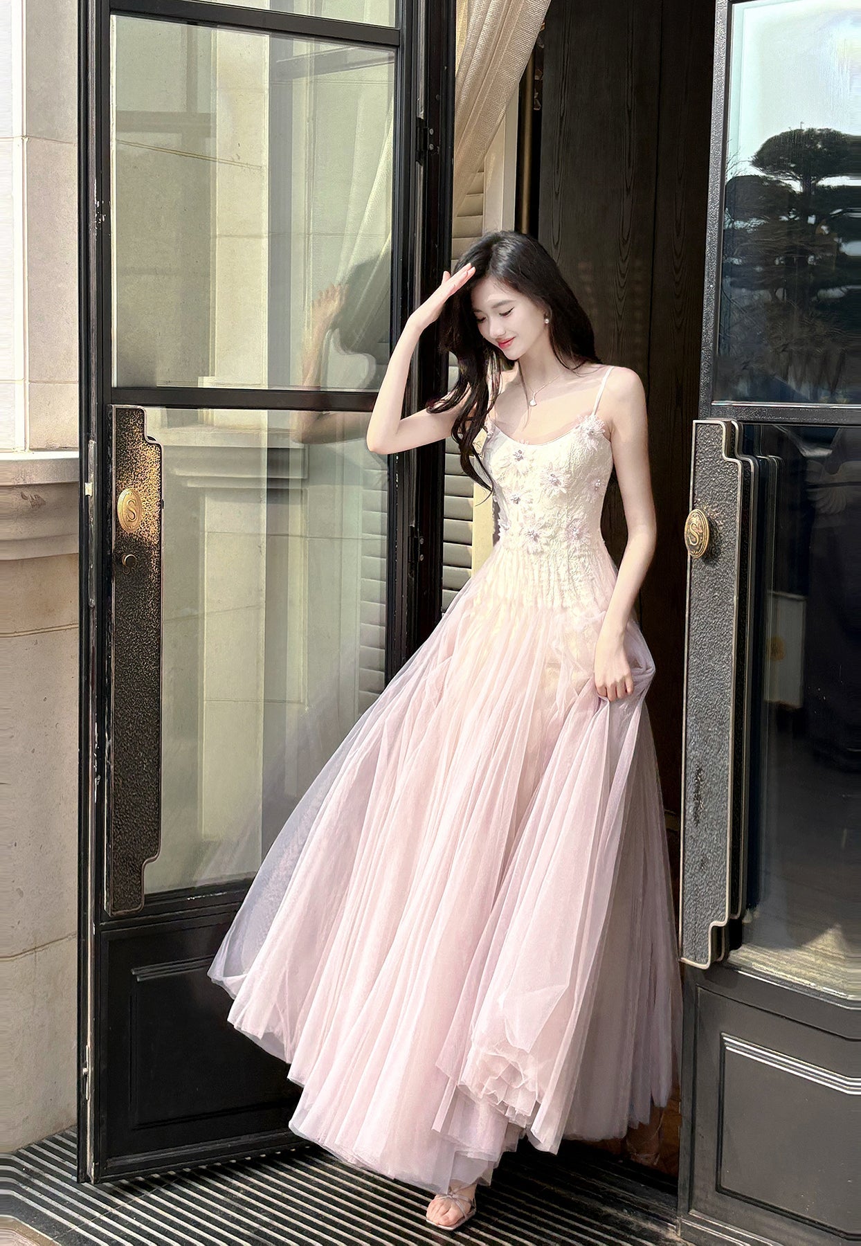 Sweet Pink Purple Lace Tulle Spaghetti Strap A-Line Prom Dresses ED02258