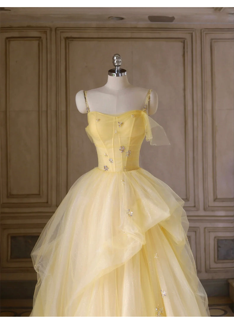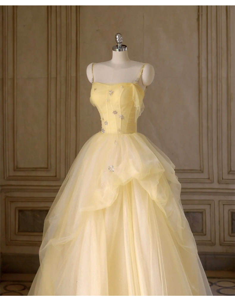Sweet Yellow Princess Tulle Prom Dress 💛A-Line Shinny Beaded Evening Gown for Graduation & Quinceanera & Birthday ED01940