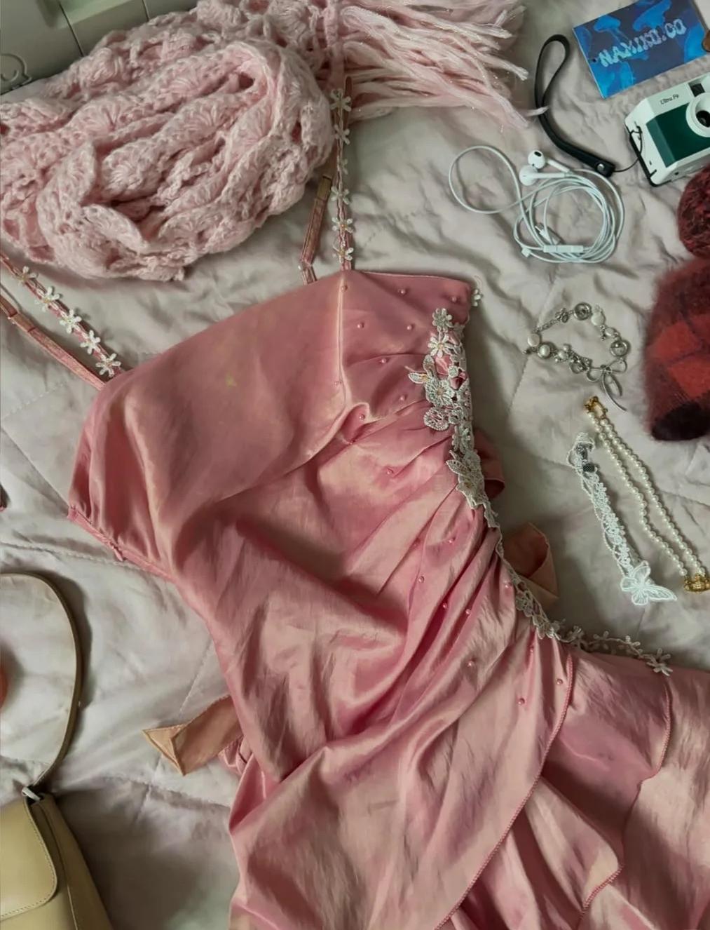 - Neckline:Spaghetti Straps