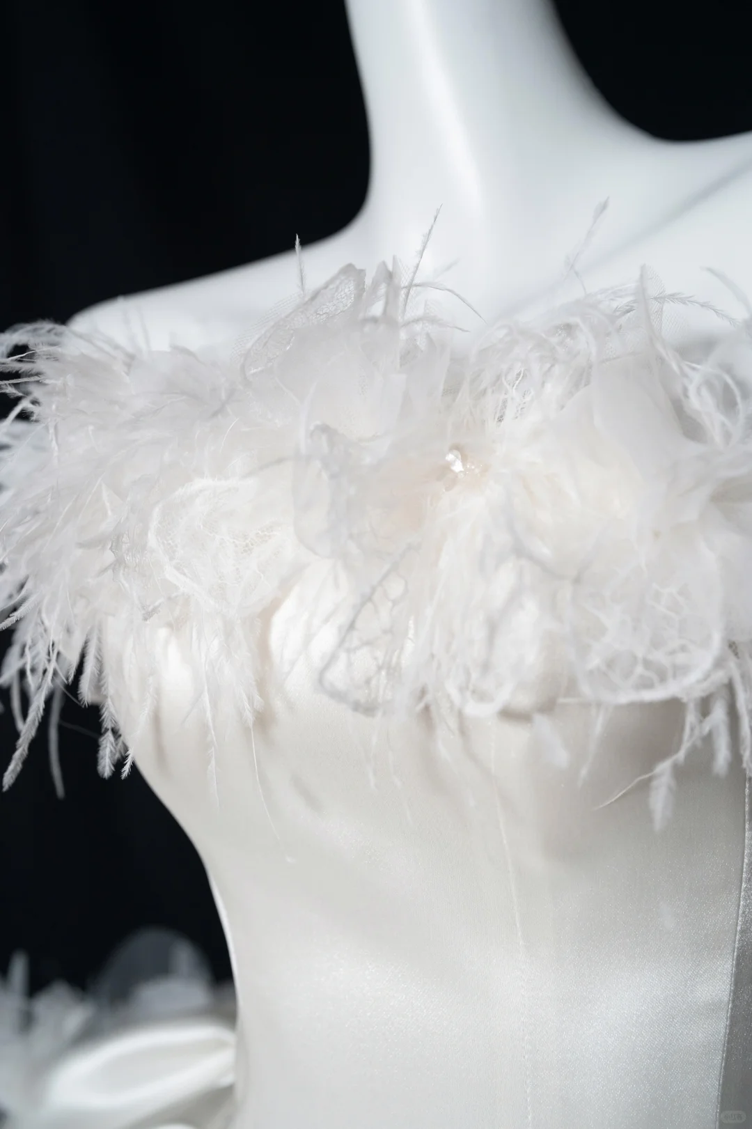 Sweet White Satin Lace Appliques Strapless A Line 18th Birthday Outfits Homecoming Dress S810