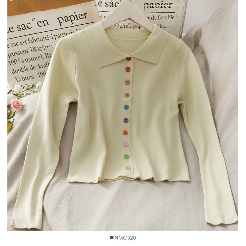Sweet wind color single breasted Polo neck slim fit sweater 1907