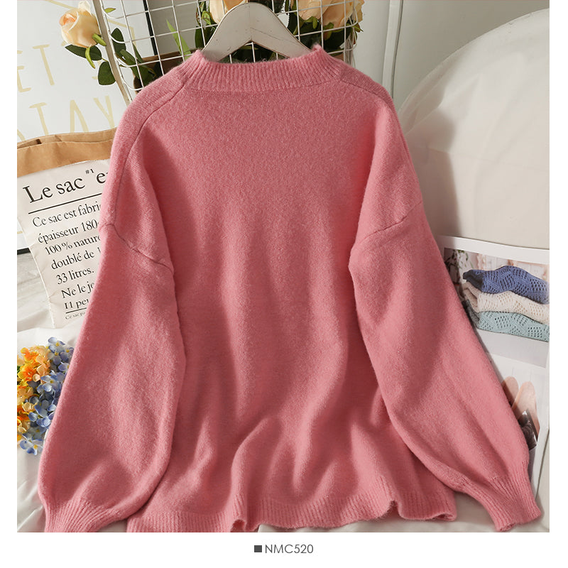 Sweet wind long sleeve loose and thin medium and long sweater 1916