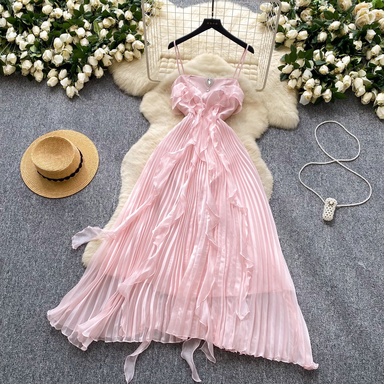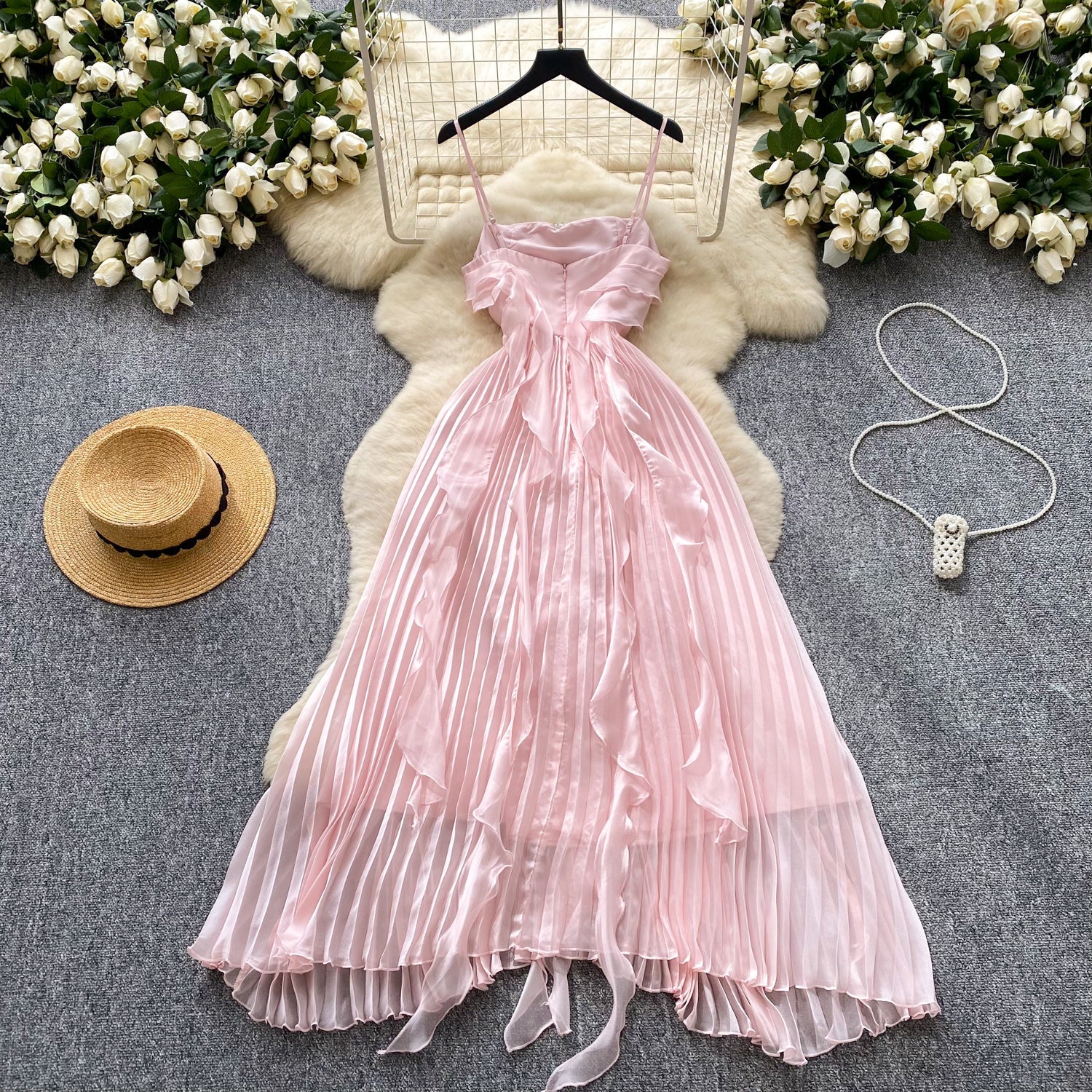 Sweetheart Pink Spaghetti Straps Sheath Chiffon Dress Cocktail Party Dress ED02924