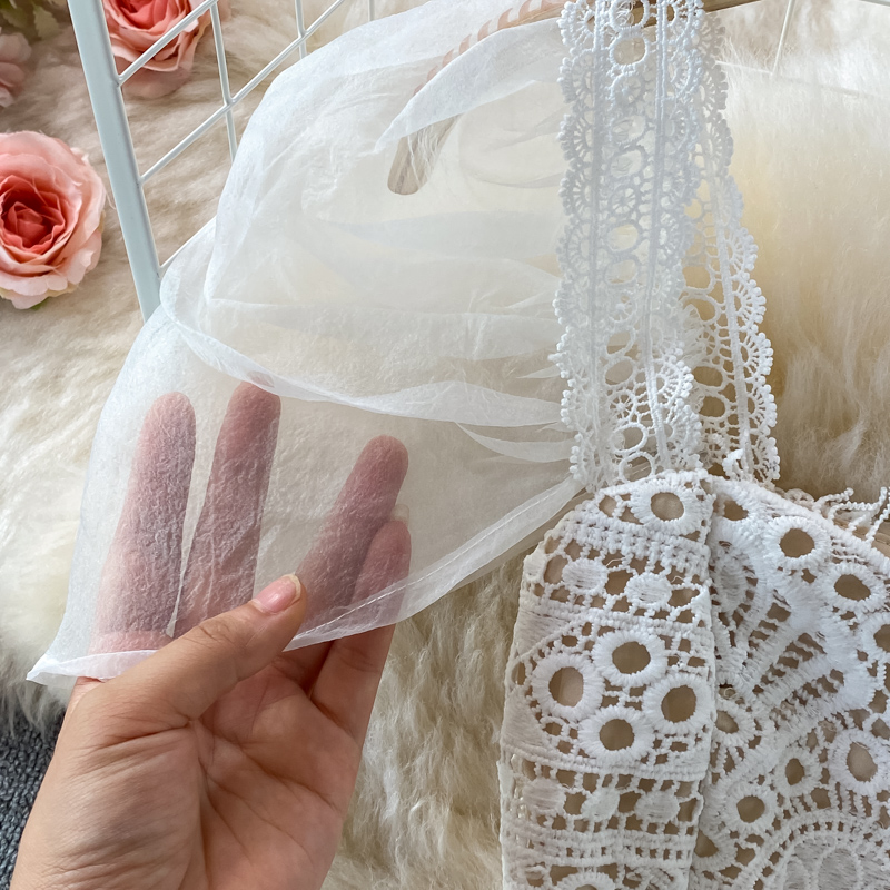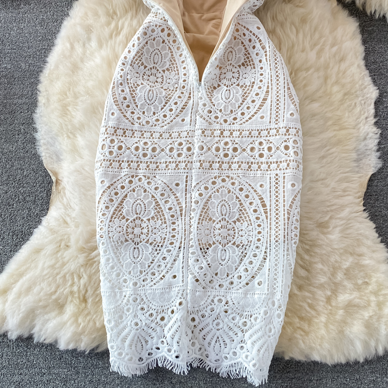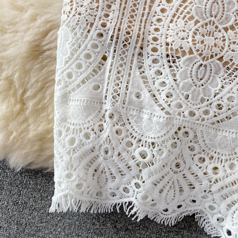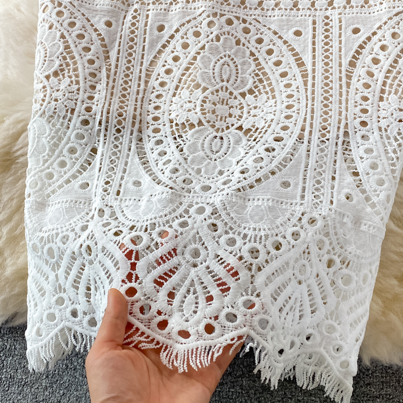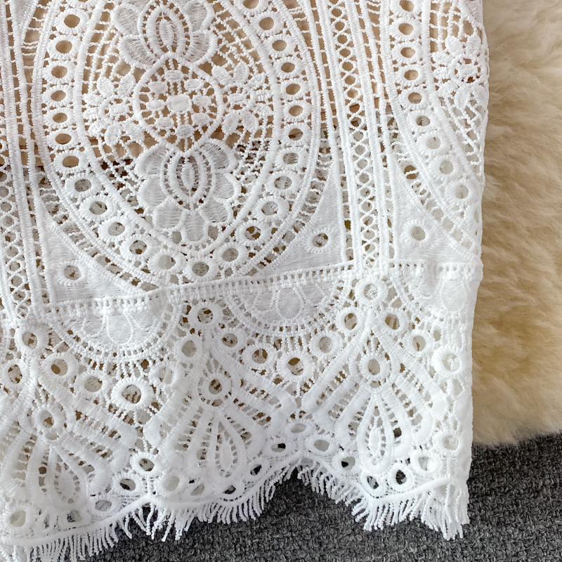 loveedsTM-White Lace Dresses for Women Summer 2024 New Puff Sleeve Square Collar Back Zipper Hollow Out A-Line Evening Midi Dress