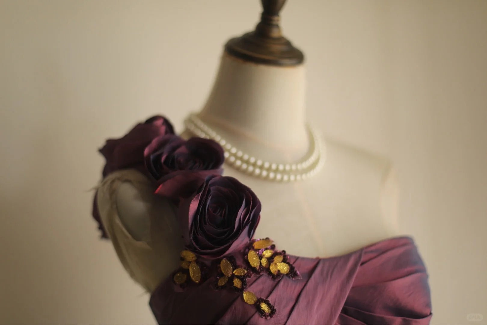 Symphony Purple Fashion Sexy Handmade Rose Flower Short Taffeta Satin Homecoming Dress Birthday Party Dress Cocktail Party Dress Evening Dress Retro Princess Dress Wedding Adult Ceremony Birthday Party gh3963