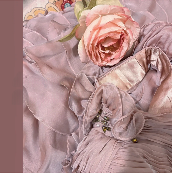 Tender Pink One Shoulder 3D Flower Chiffon Layered Mermaid Prom Dress P3772