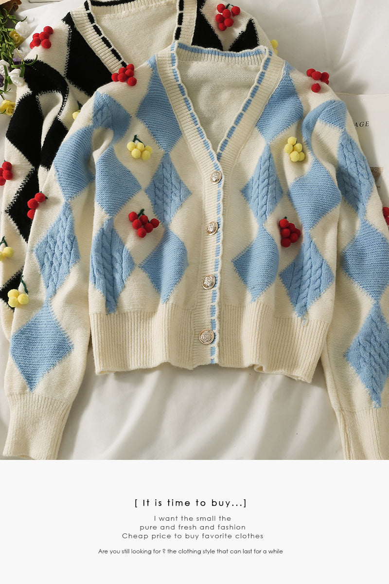 Three dimensional decorative single breasted cardigan long sleeved sweater 1804