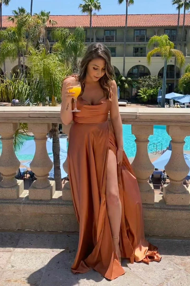 Tie Straps Burgundy Long Prom Dress with Slit,Evening Dresses for Weddings