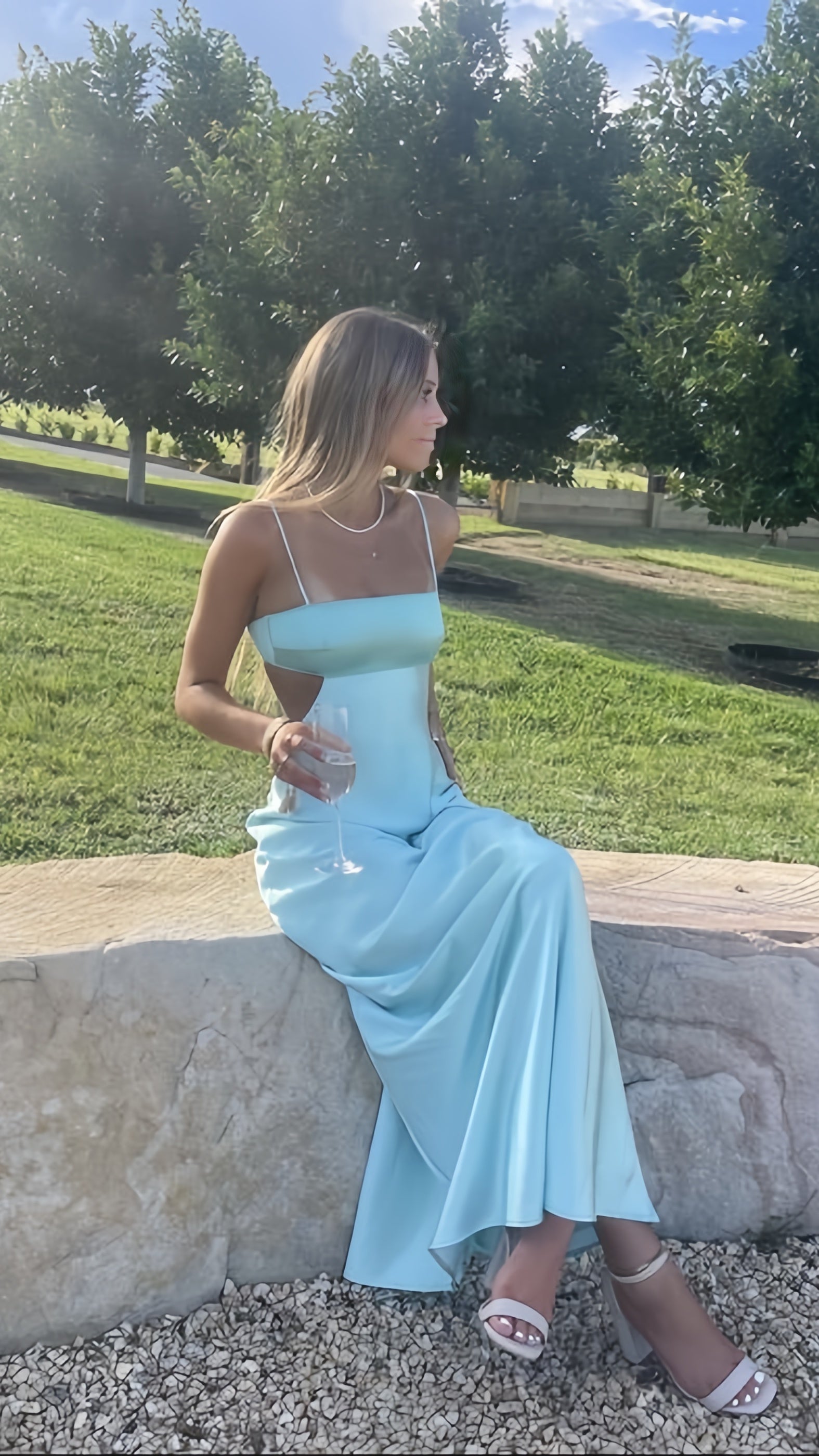 Tiffany Blue Party Dresses, Satin Evening Dresses, Long Prom Dress