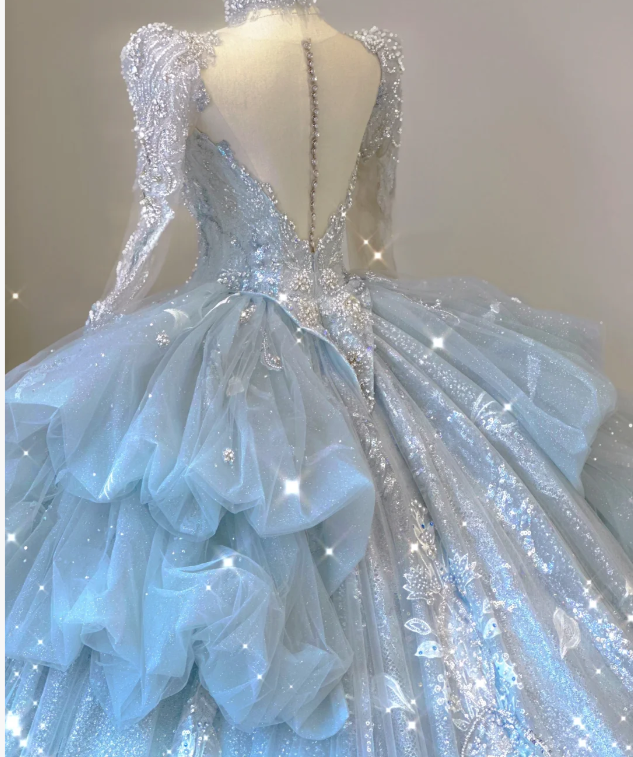 Timeless Ball Gown V Neckline Sequin Blue Long Sleeves Wedding Dresses Brides Dress DP465