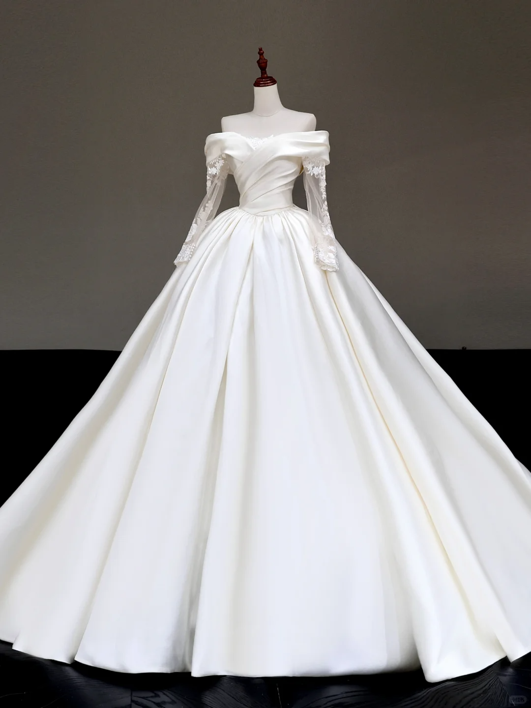 Timeless Bridal Gown Ball Gown Off The Shoulder Satin Long Sleeves Wedding Dresses Bridal Gowns DP856