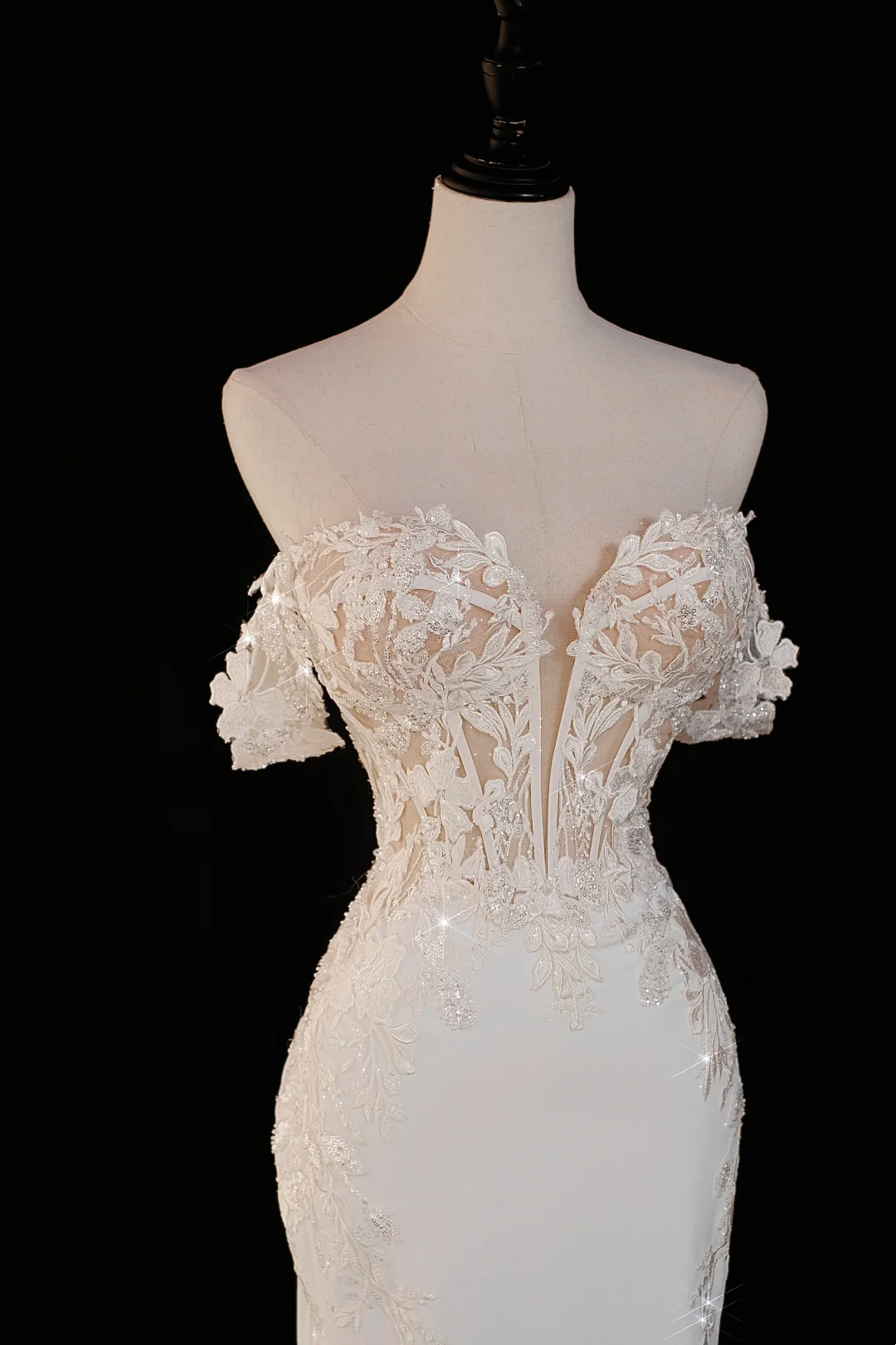 Timeless Bridal Gown Mermaid Off The Shoulder Satin Short Sleeves Wedding Dresses Elegant Bridal Gowns DH885