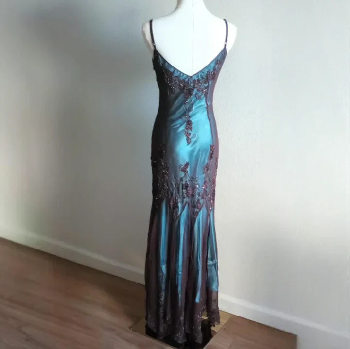Turquoise Vintage Elegant Exquisite Floral Beading Spaghetti Strap Long Chiffon Ball Gown Evening Dress Birthday Party Dress Formal Women Prom Dress gh3931