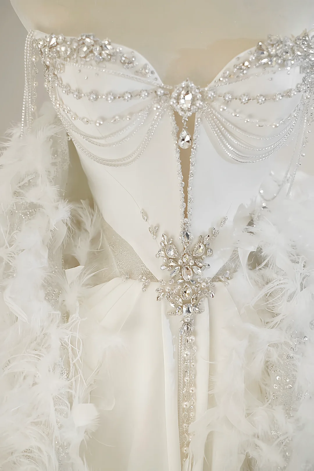 Unique Bridal Gown A Line Sweetheart White Satin Long Wedding Dresses With Silver Beads Elegant Brides Gowns DH738