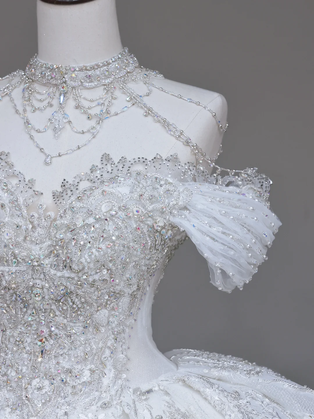 Unique Bridal Gown Ball Gown High Neckline White Sequin Wedding Dresses Bridal Gowns DP720