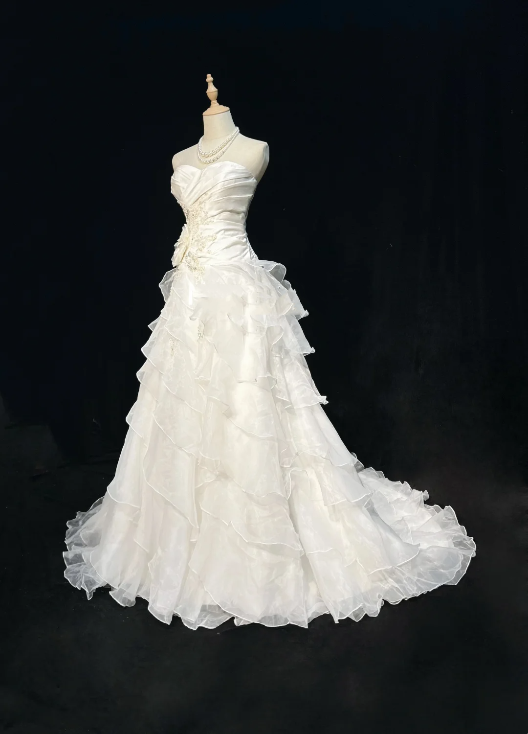 Unique Bridal Gown Ball Gown Strapless Lace Sleeveless White 50s Wedding Dresses Modest Bridal Gowns DH1105