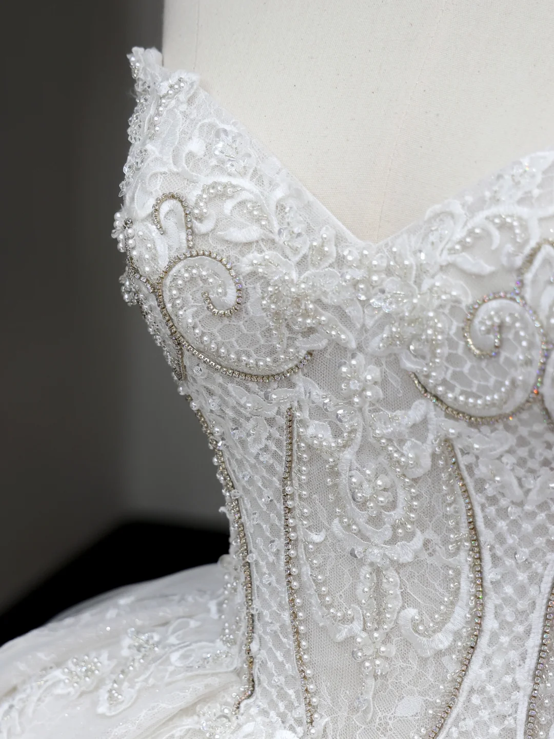 Unique Bridal Gown Ball Gown Sweetheart White Lace Wedding Dresses Bridal Gowns DP844