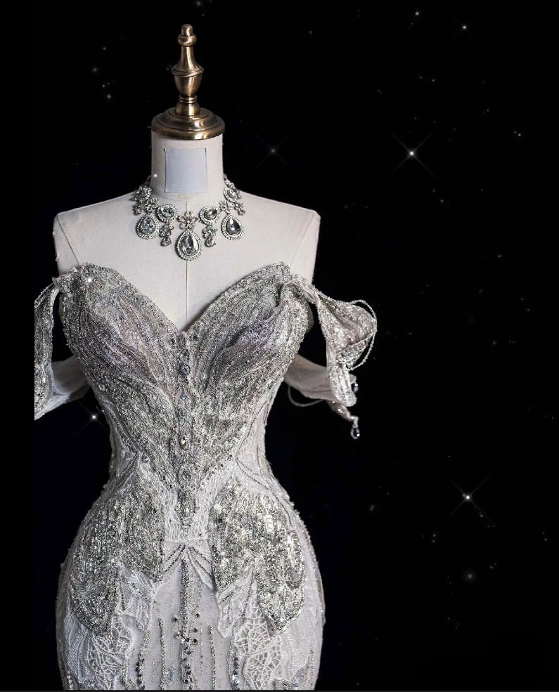 Unique Mermaid Off The Shoulder Sequin Short Sleeves White Wedding Dresses Brides Dress SD1932