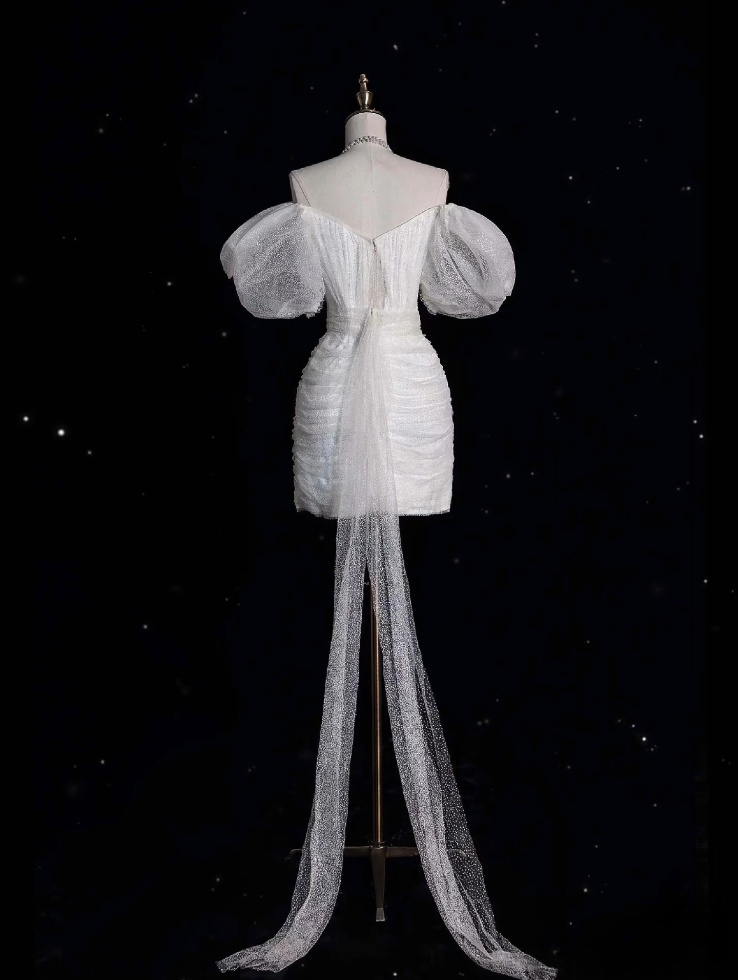 Unique Sheath Off The Shoulder Sequin Short Sleeves White Wedding Dresses Brides Dress SD1939