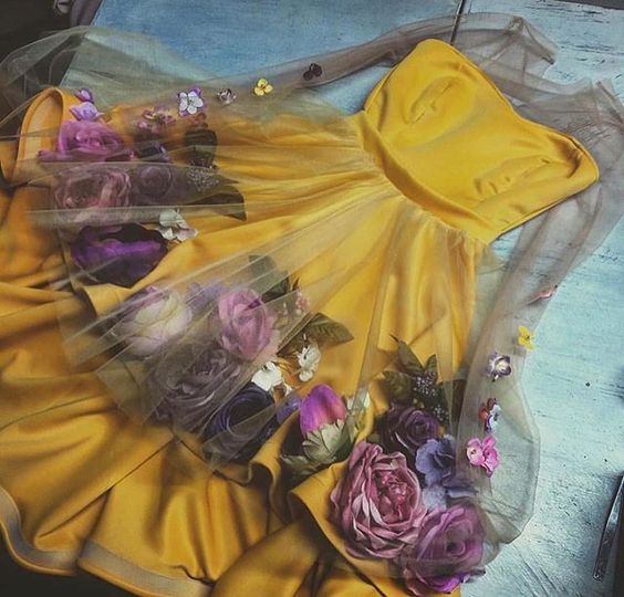 V Neck 3D Applique Short Dress, Long Sleeves Homecoming Dress cg9741