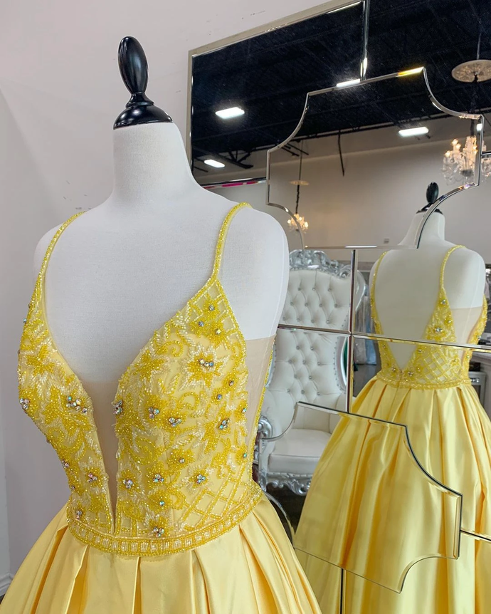 V-Neck Beaded Prom Dress, Long Prom Dresses ,Formal Prom Dress cg15008