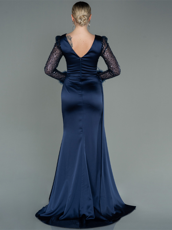 V-neck Long Sleeve Solid Color Maxi Dress