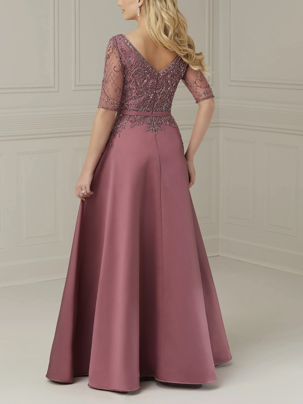 V Neck Short Sleeve Solid Color Lace Maxi Dress