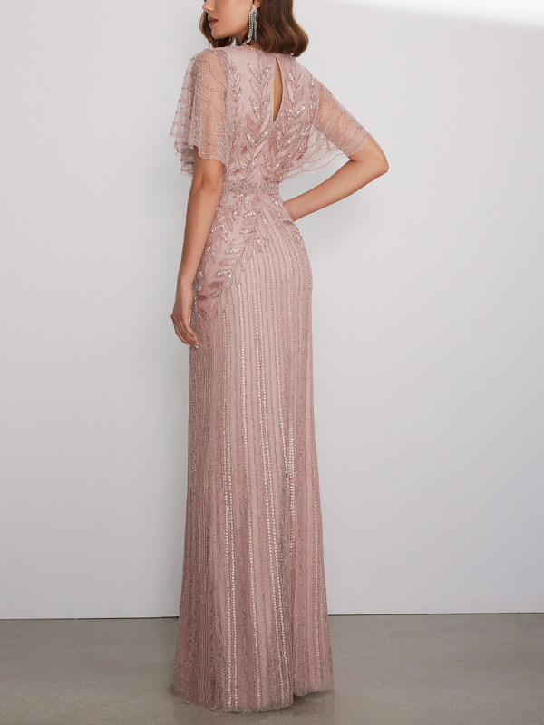 V-Neck Solid Color Lace Sequins Maxi Dress