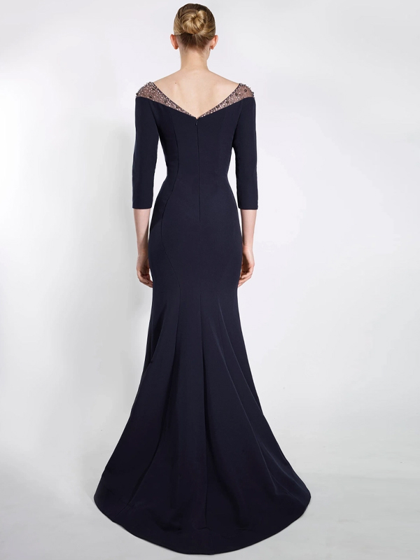 V-neck Solid Color Mesh Long Sleeves Maxi Dress