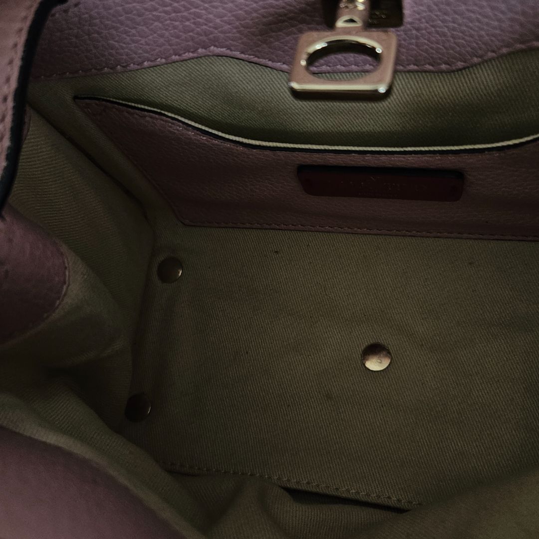 Valentino pink textured leather crossbody flap bag with lock and key, with gold hardware, beige canvas lined interior