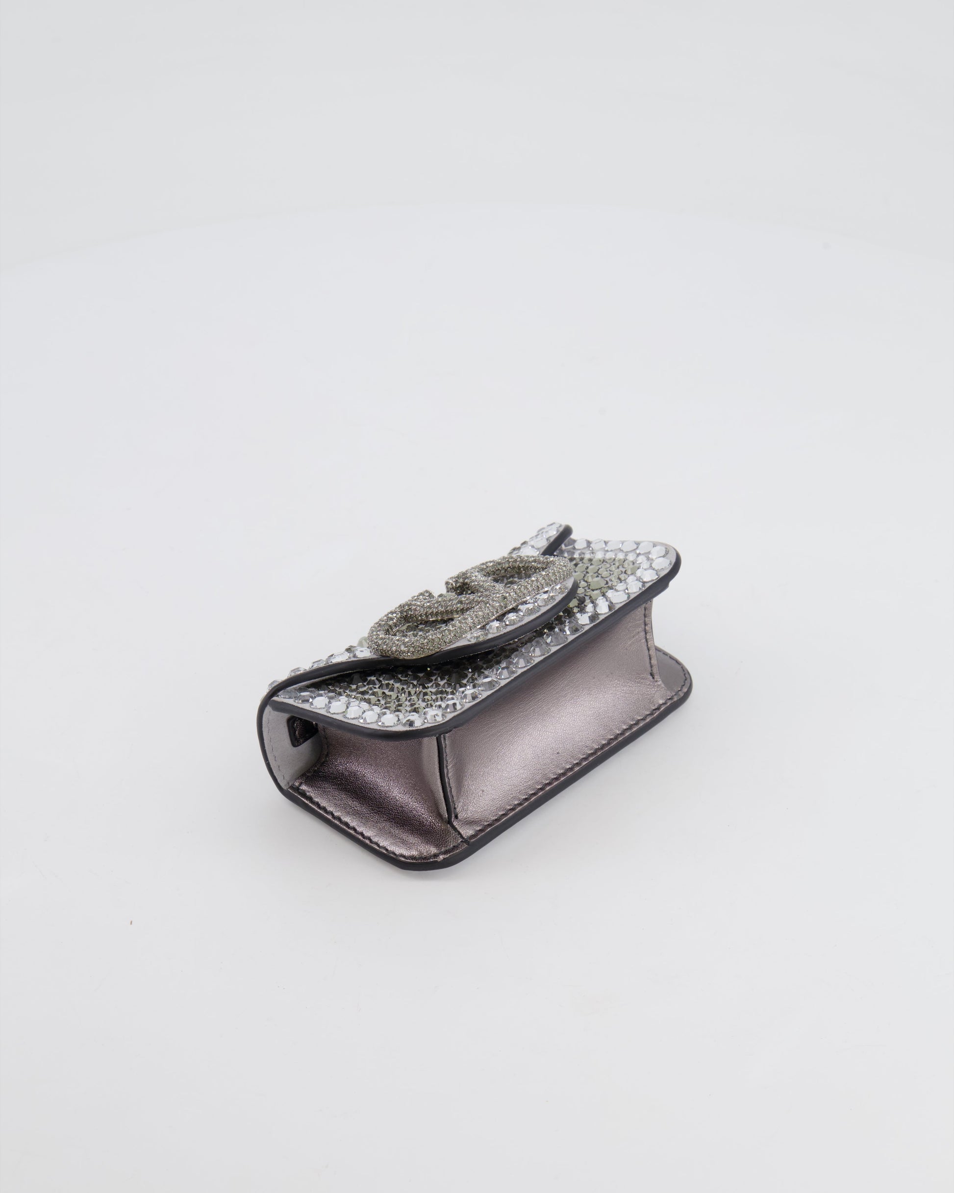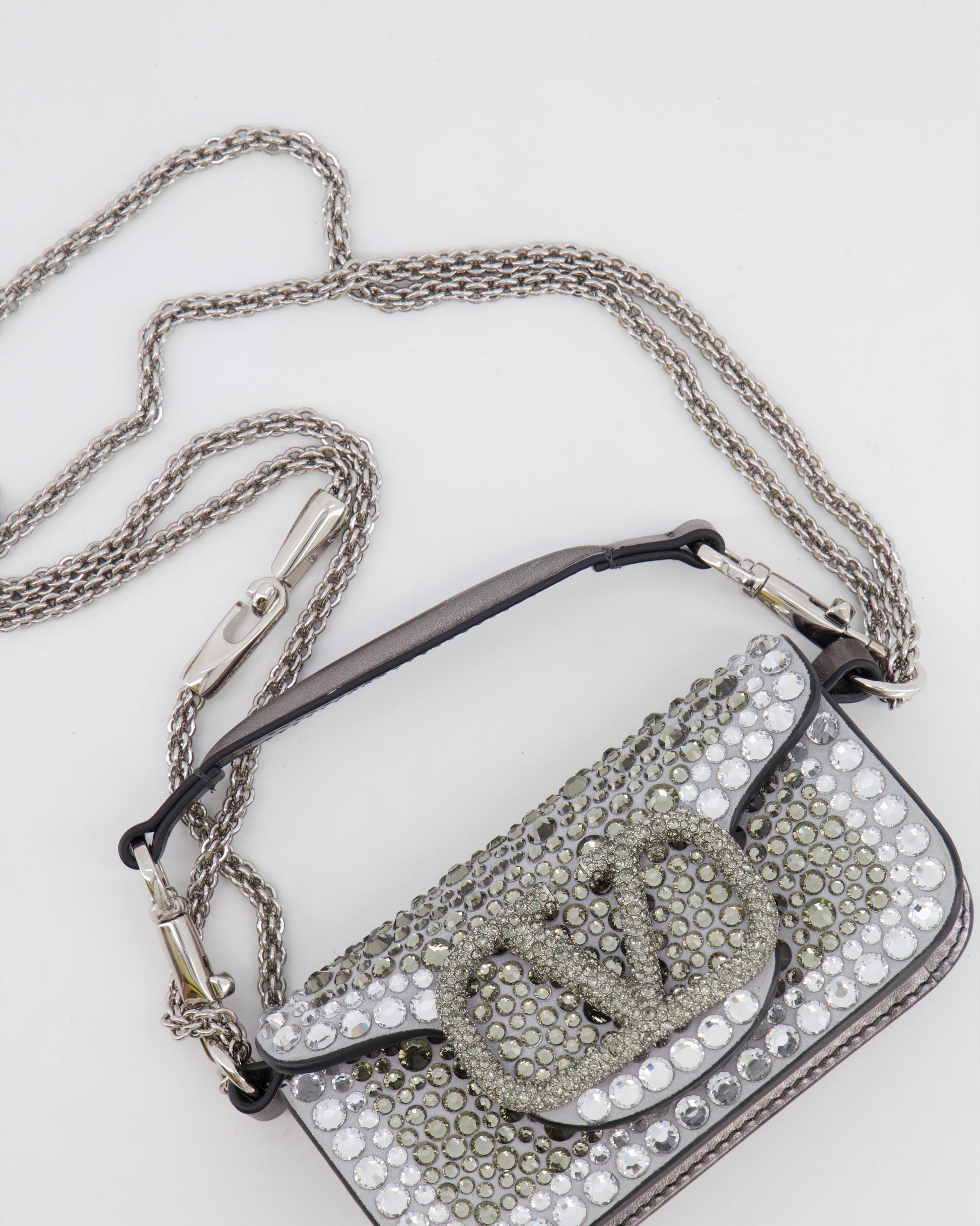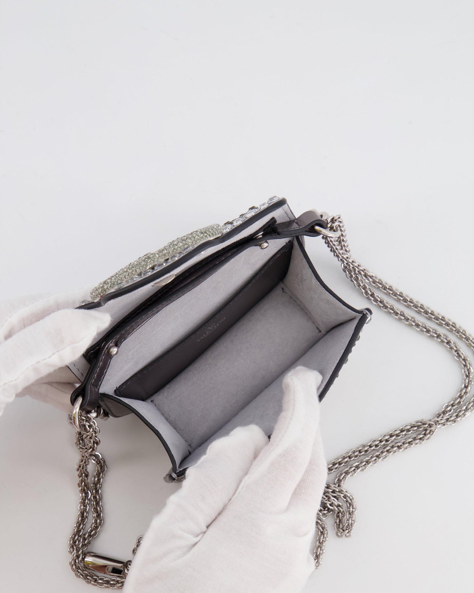 Valentino Silver Micro Logo Chain Bag with Rhinestones and Silver Hardware RRP £2,000