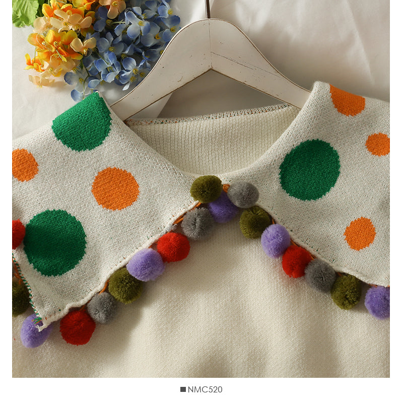 Versatile wool ball decorative doll neck long sleeve women's sweater 1930
