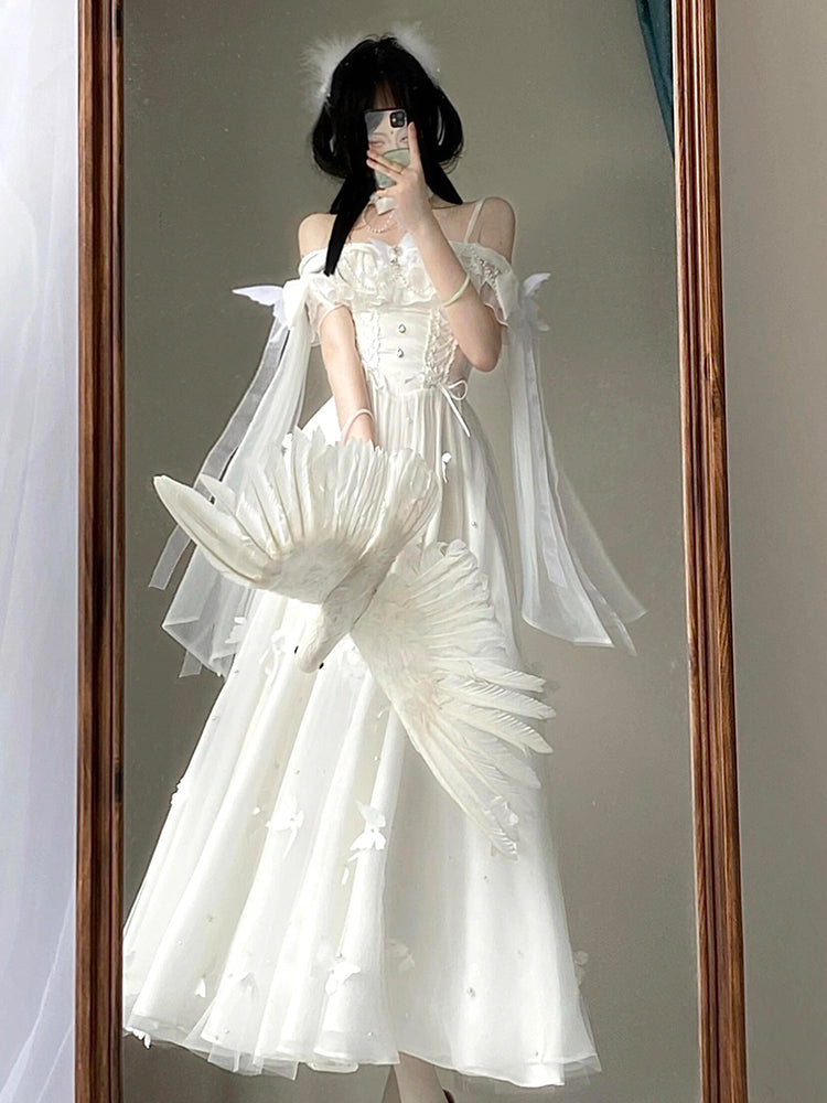 Vintage A Line Spaghetti Straps Summer Holiday Dresses 16th Birthday Dress Lolita Dress White Birthday Outfits W1013