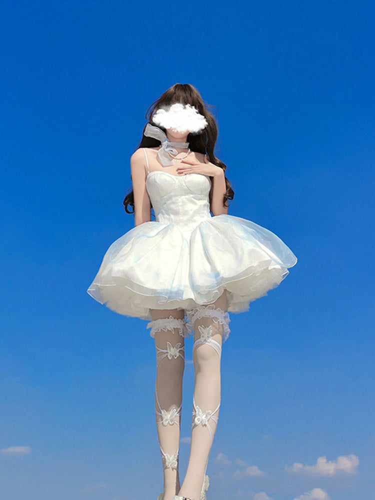 Vintage Ball Gown Spaghetti Straps Short Chiffon Summer 18th Birthday Dress Lolita Dress Birthday Outfits W1229