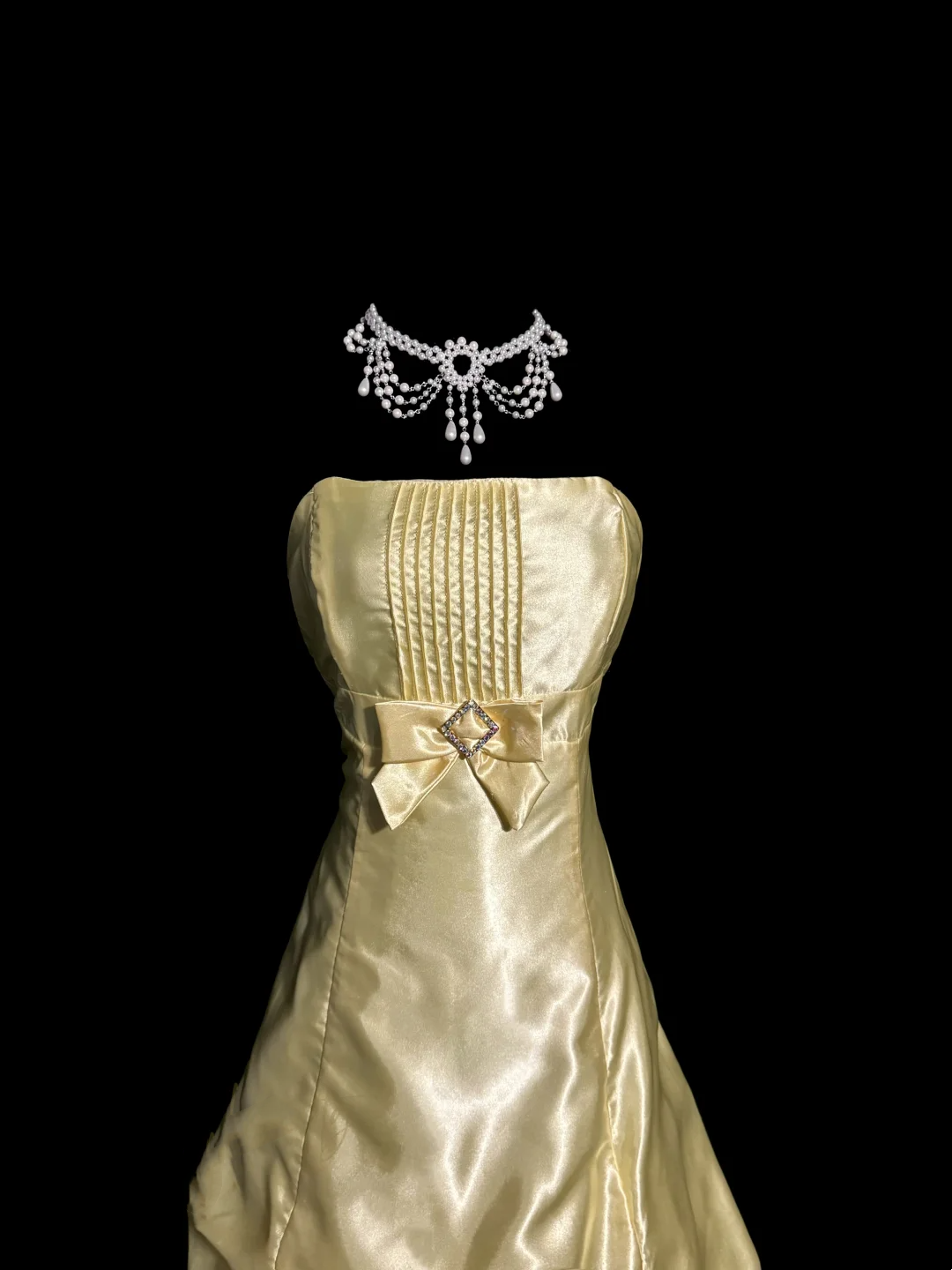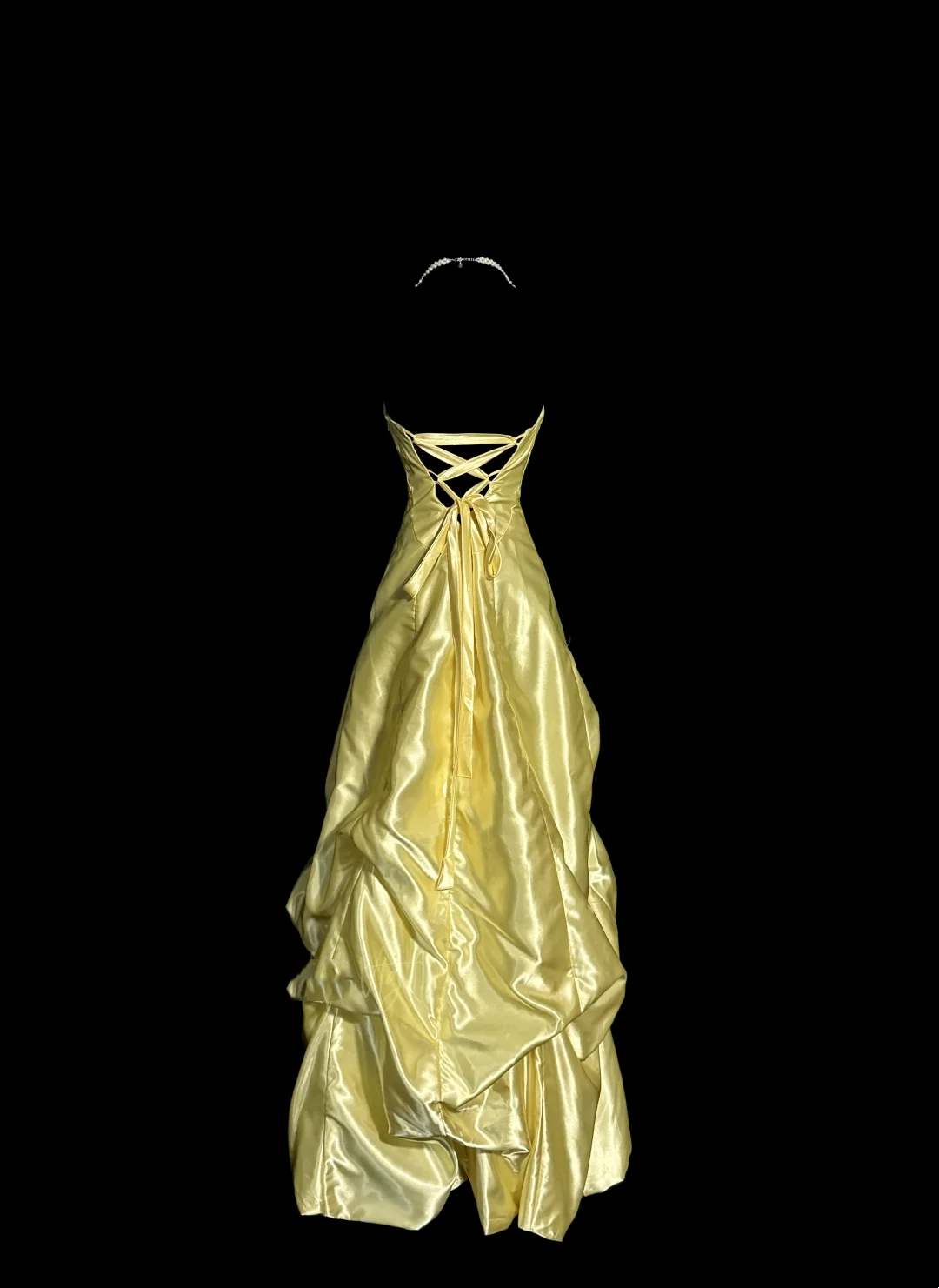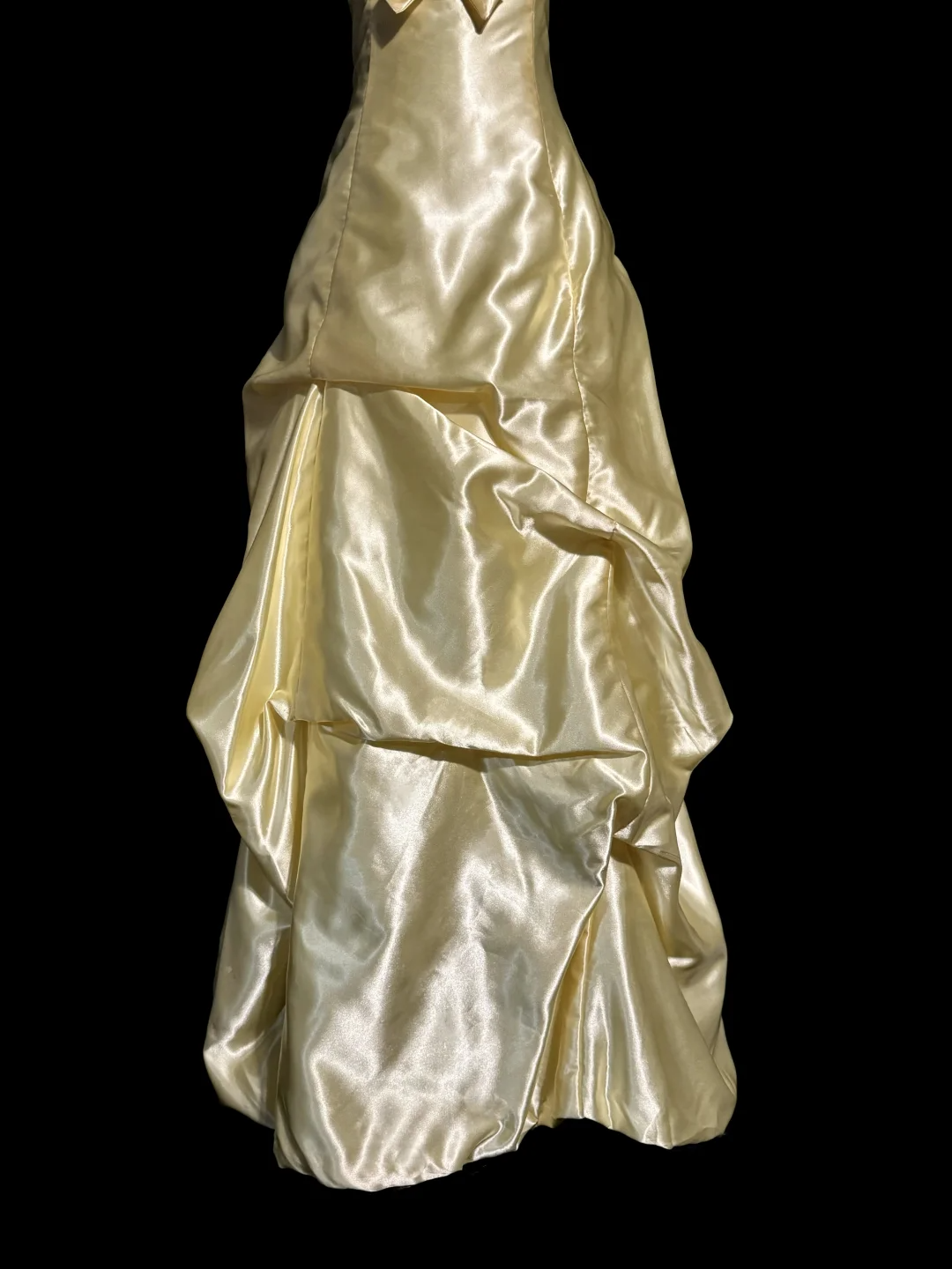 Vintage Ball Gown Strapless Yellow Satin 90s Long Prom Dresses Party Dress 30th Birthday Outfits Graduation Dresses W864