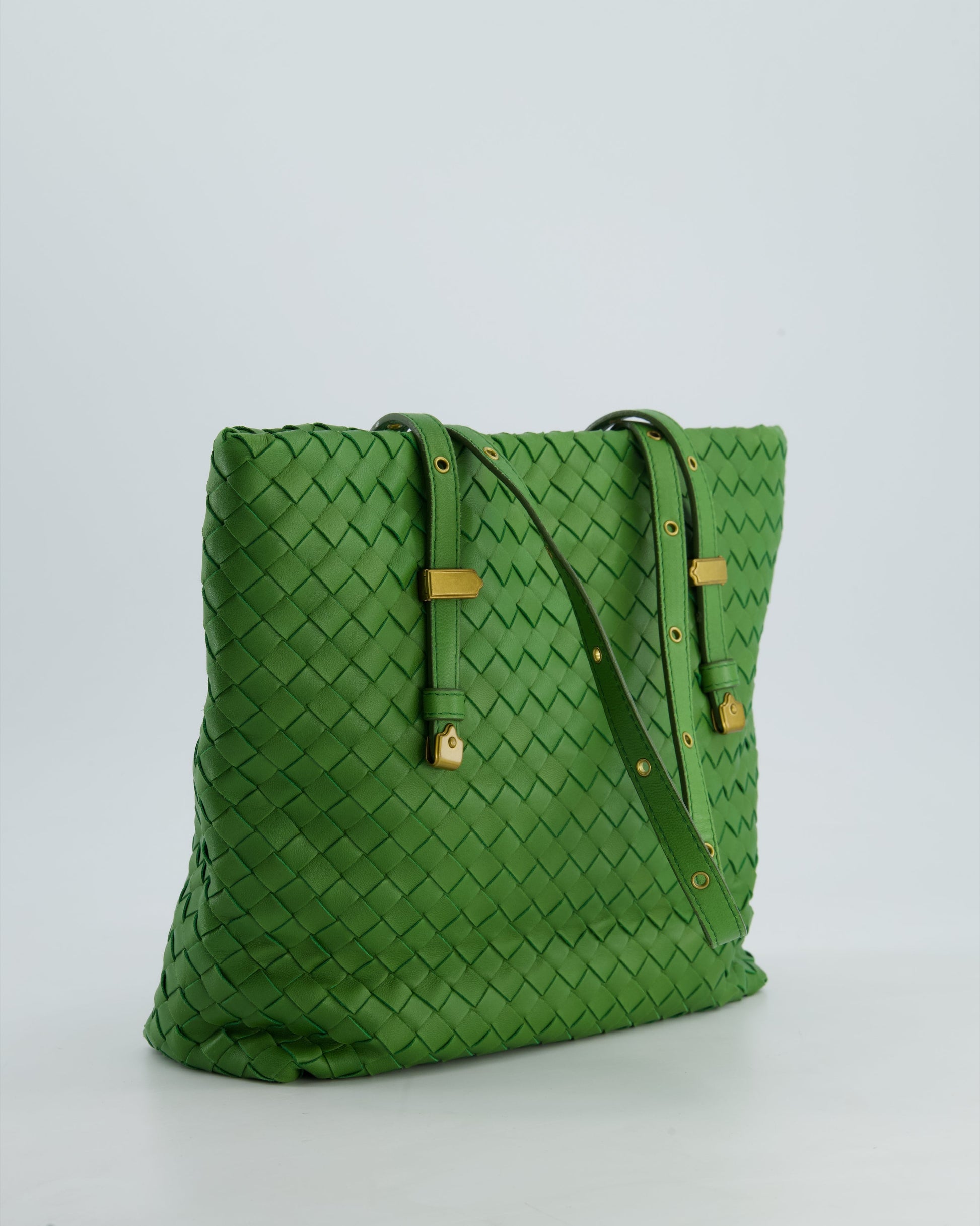 Vintage Bottega Veneta Small Parachute Bag in Green Intrecciato Leather with Gold Hardware