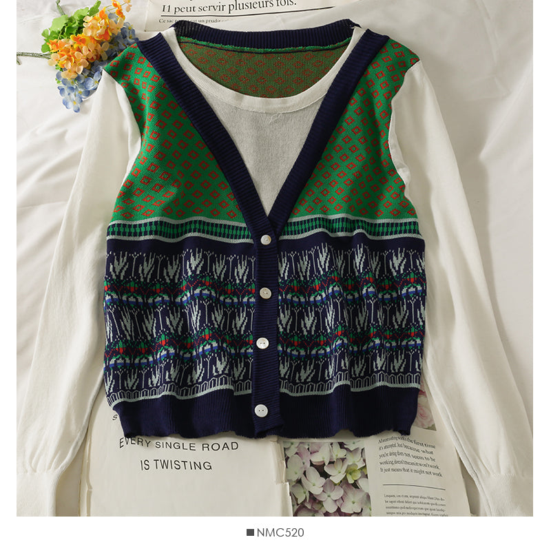 Vintage contrast stitched Plaid fake two-piece blouse 1952