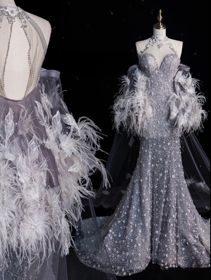 Vintage Fashion Mermaid High Neckline Sequin Floral Floor Length Evening Dress Prom Dresses SD1923