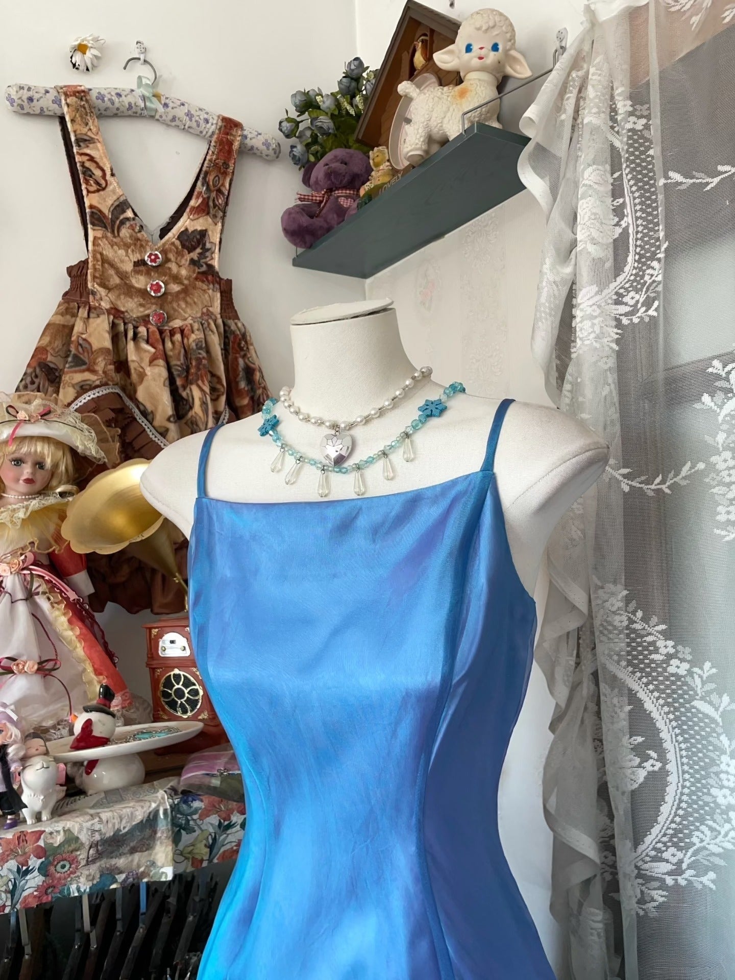 Vintage Fashion Mermaid Spaghetti Straps Blue Floor Length Evening Dress Prom Dresses SD1880
